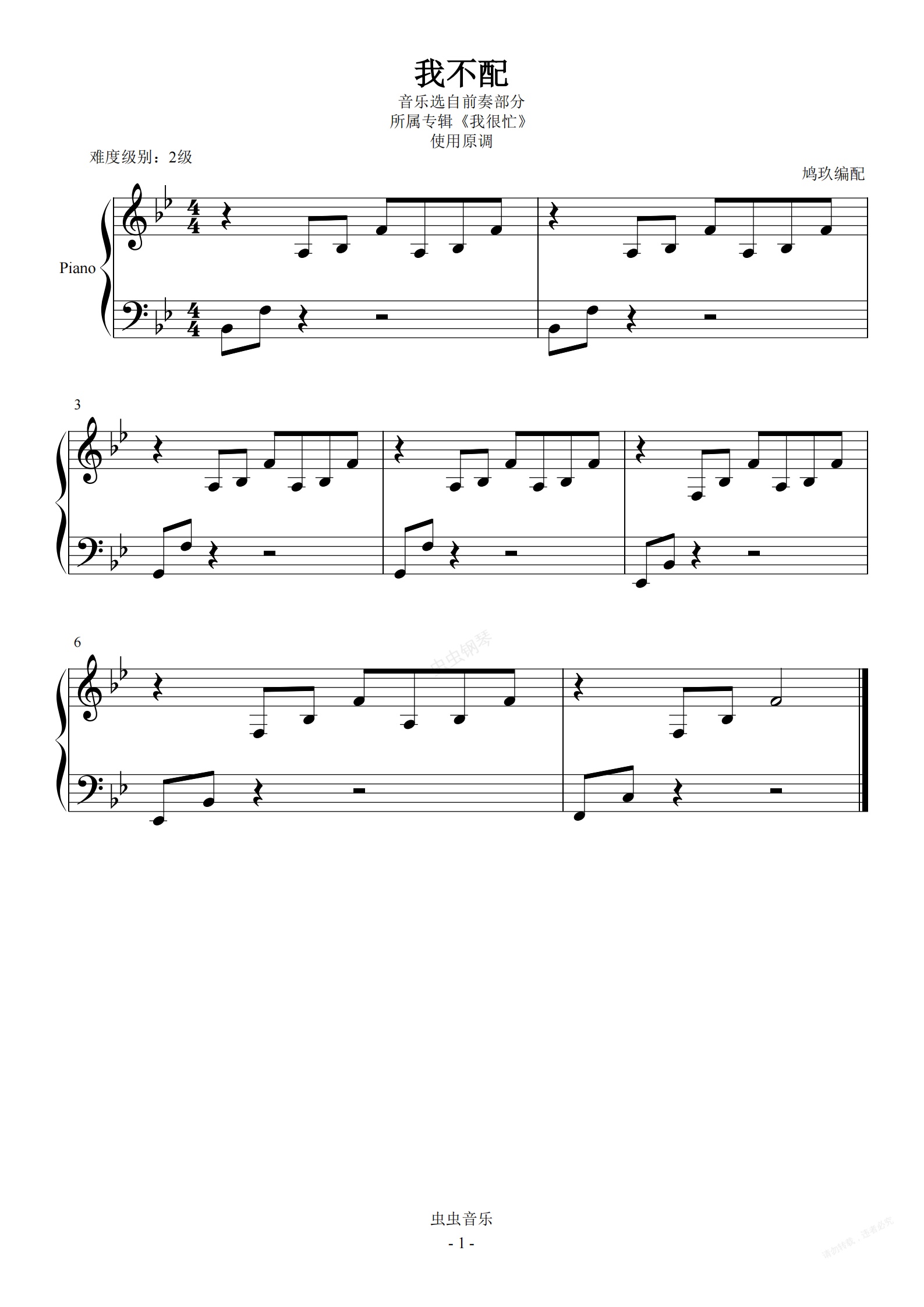 钢琴谱:2-6 我不配【左右手的连接与两个降号的调号】