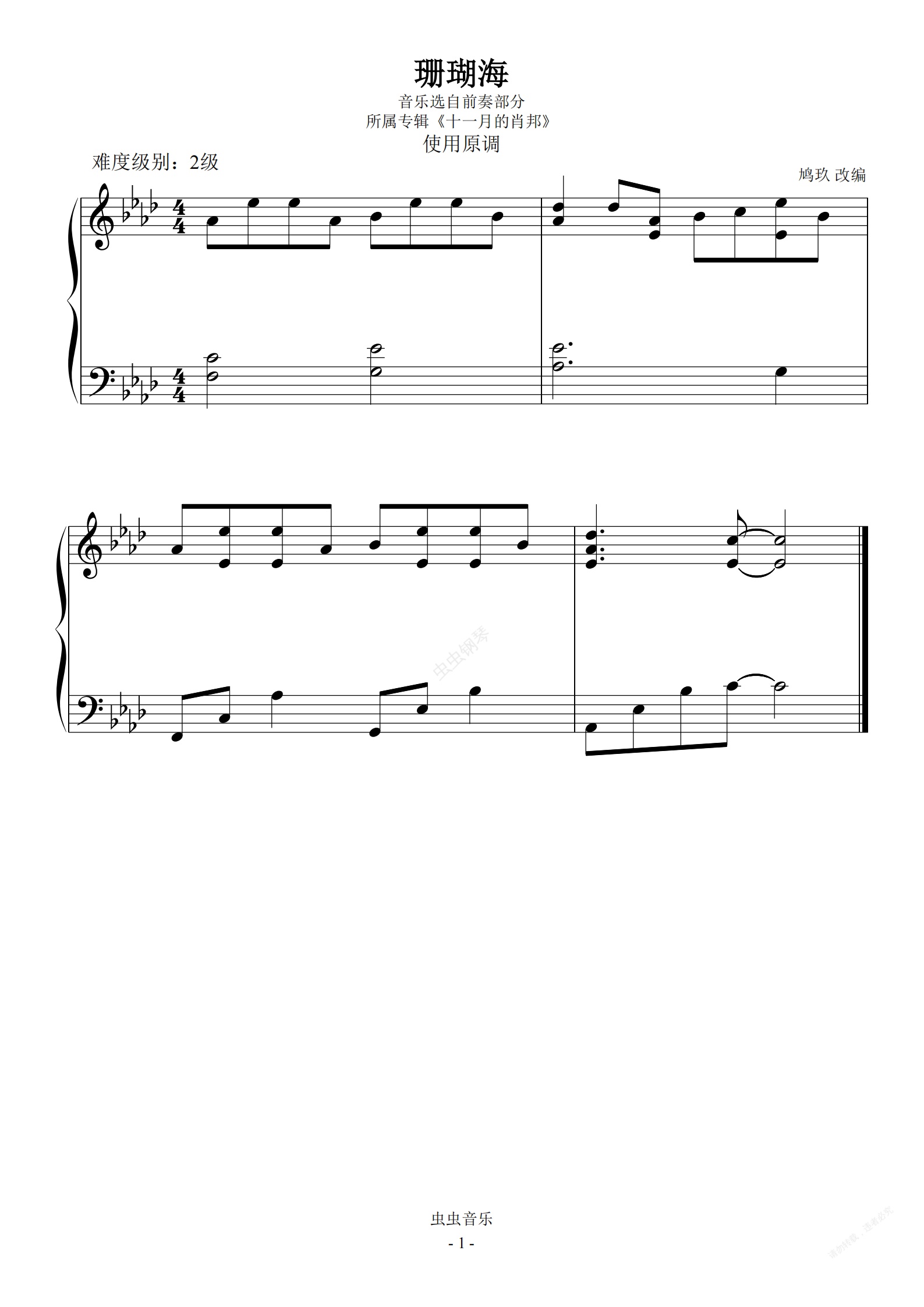 钢琴谱:2-9 珊瑚海【四个降号的调号与右手八度】