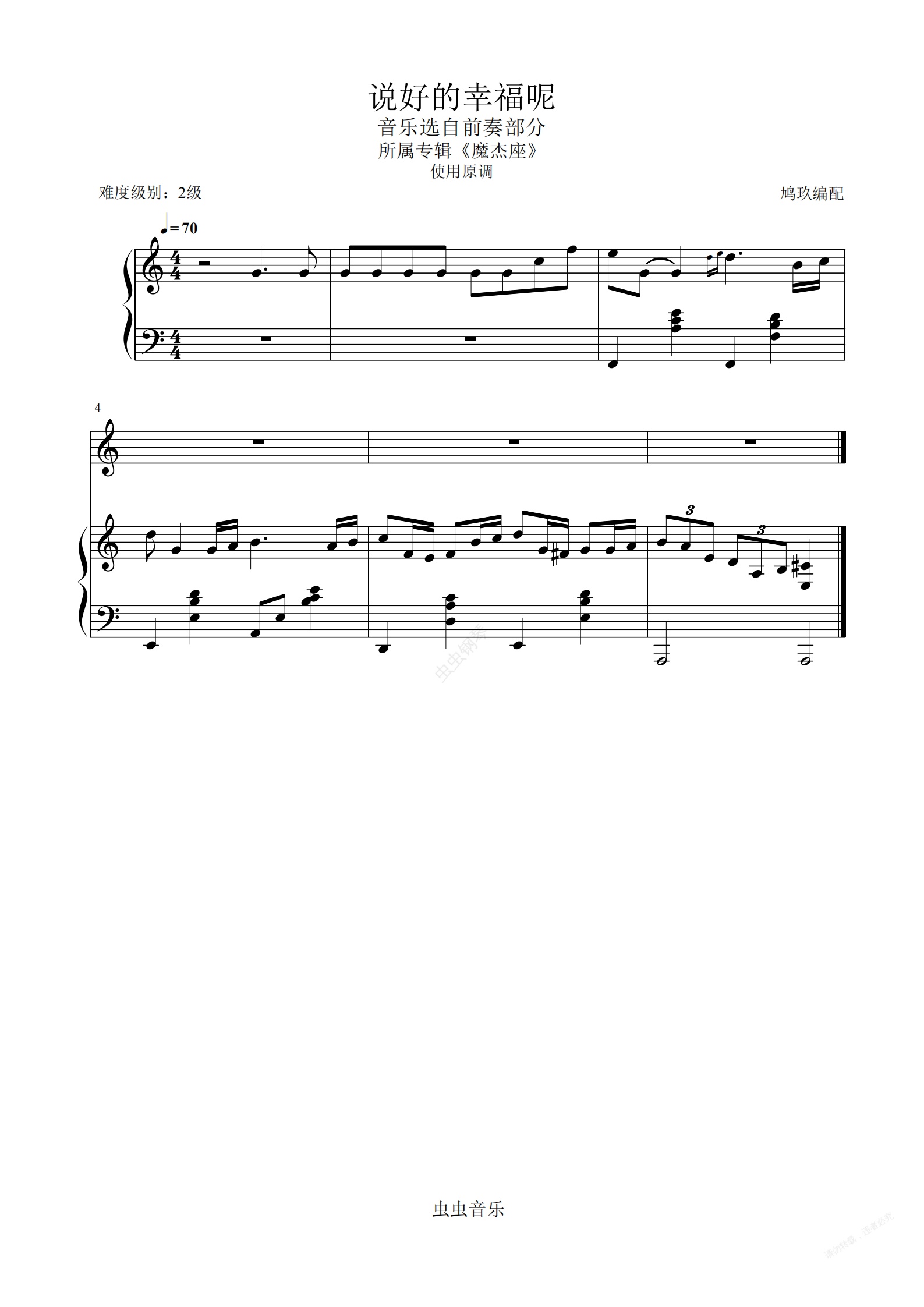 钢琴谱:2-14 说好的幸福呢【短颤音与复杂节奏】