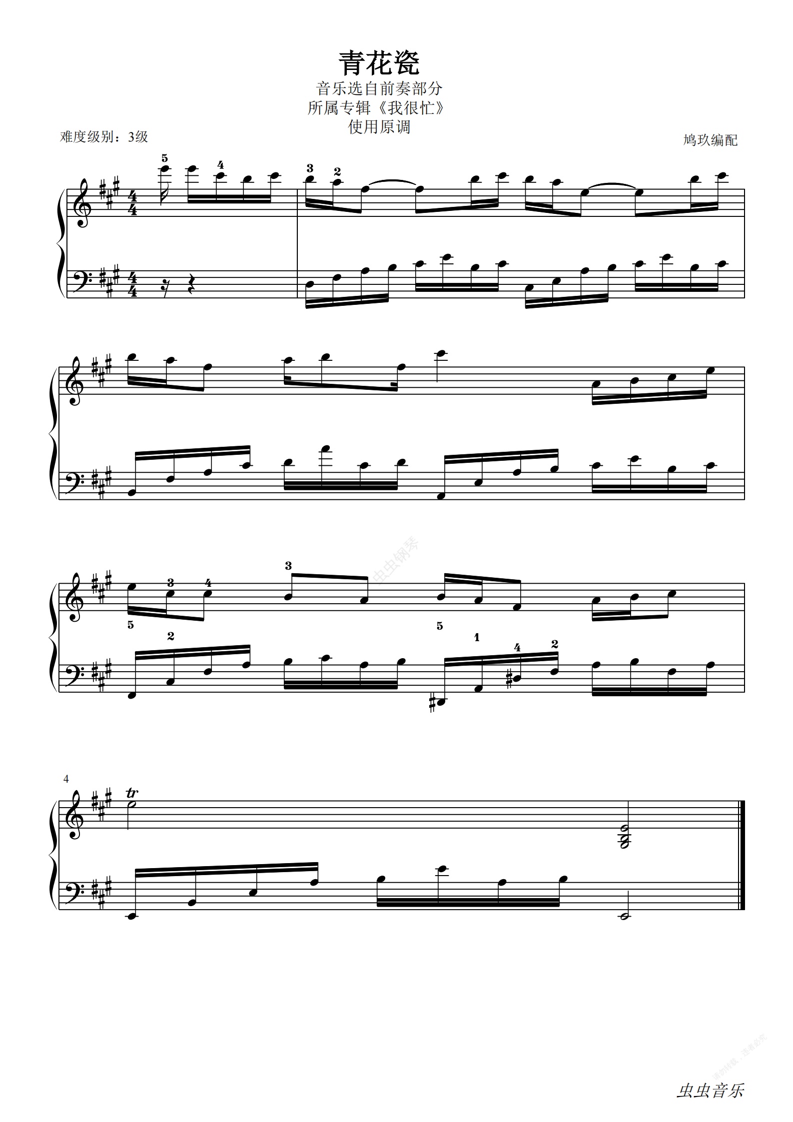钢琴谱:3-4 青花瓷【三个升号的调号与复杂节奏】