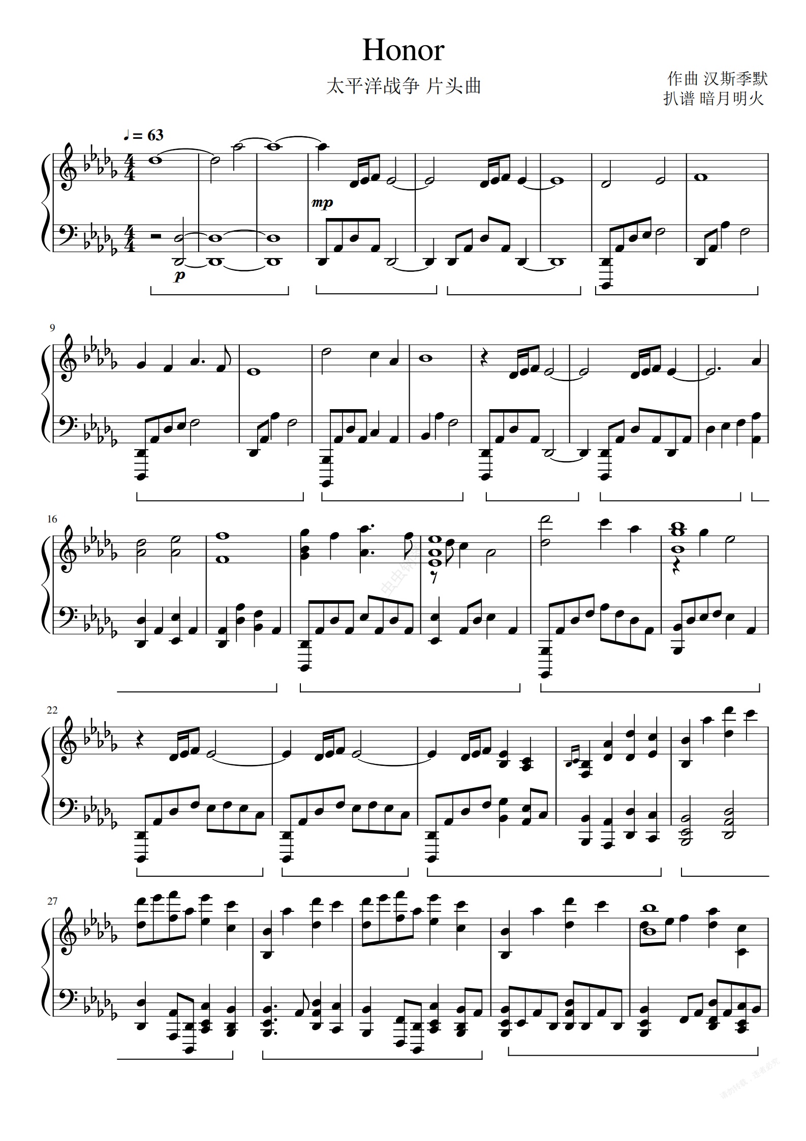 钢琴谱:Honor 太平洋战争片头曲完整版