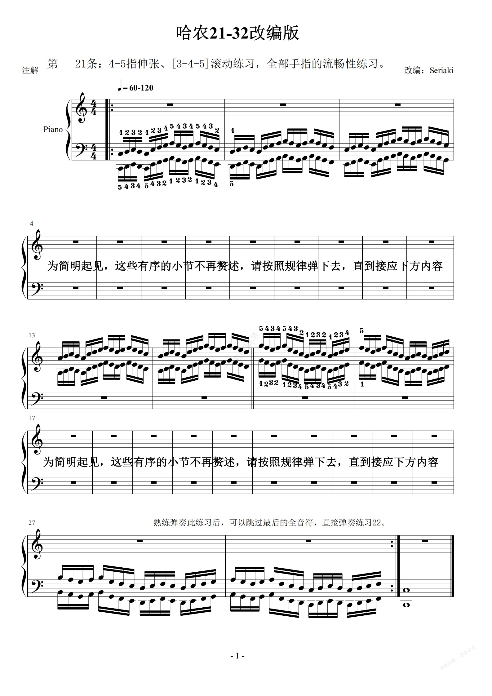 钢琴谱:哈农20--32完全转位改编版_精简排版