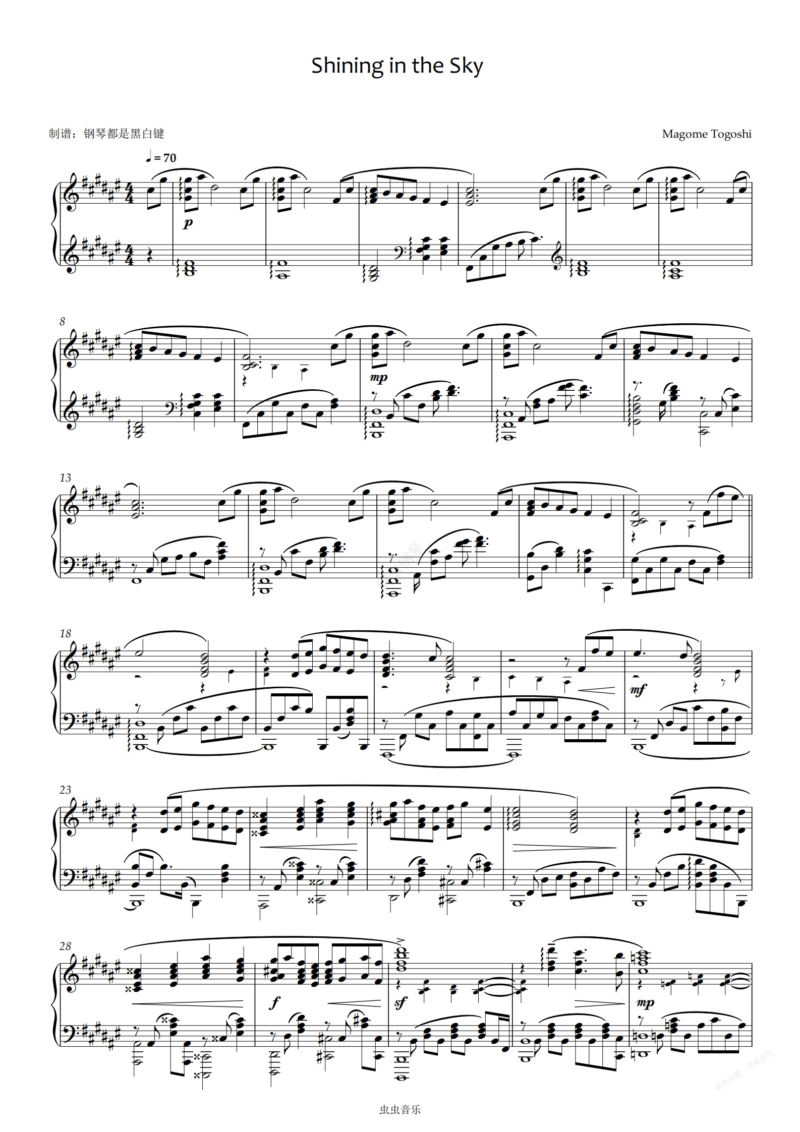 钢琴谱:【Clannad】Shining in the Sky 爆好听钢琴独奏