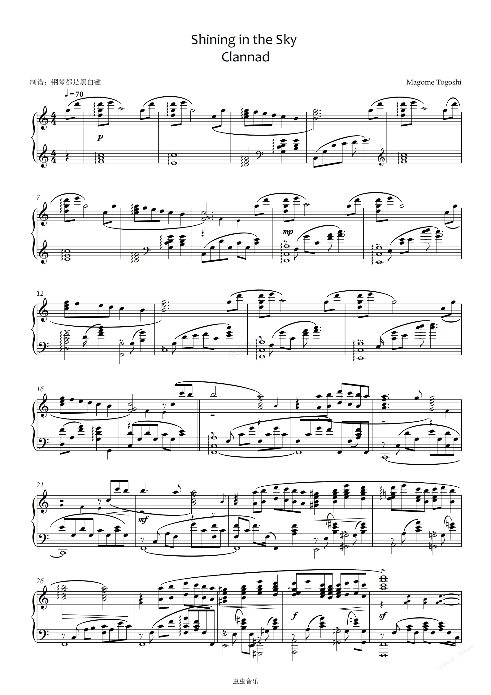 钢琴谱:【Clannad】Shining in the Sky C调 爆好听钢琴独奏