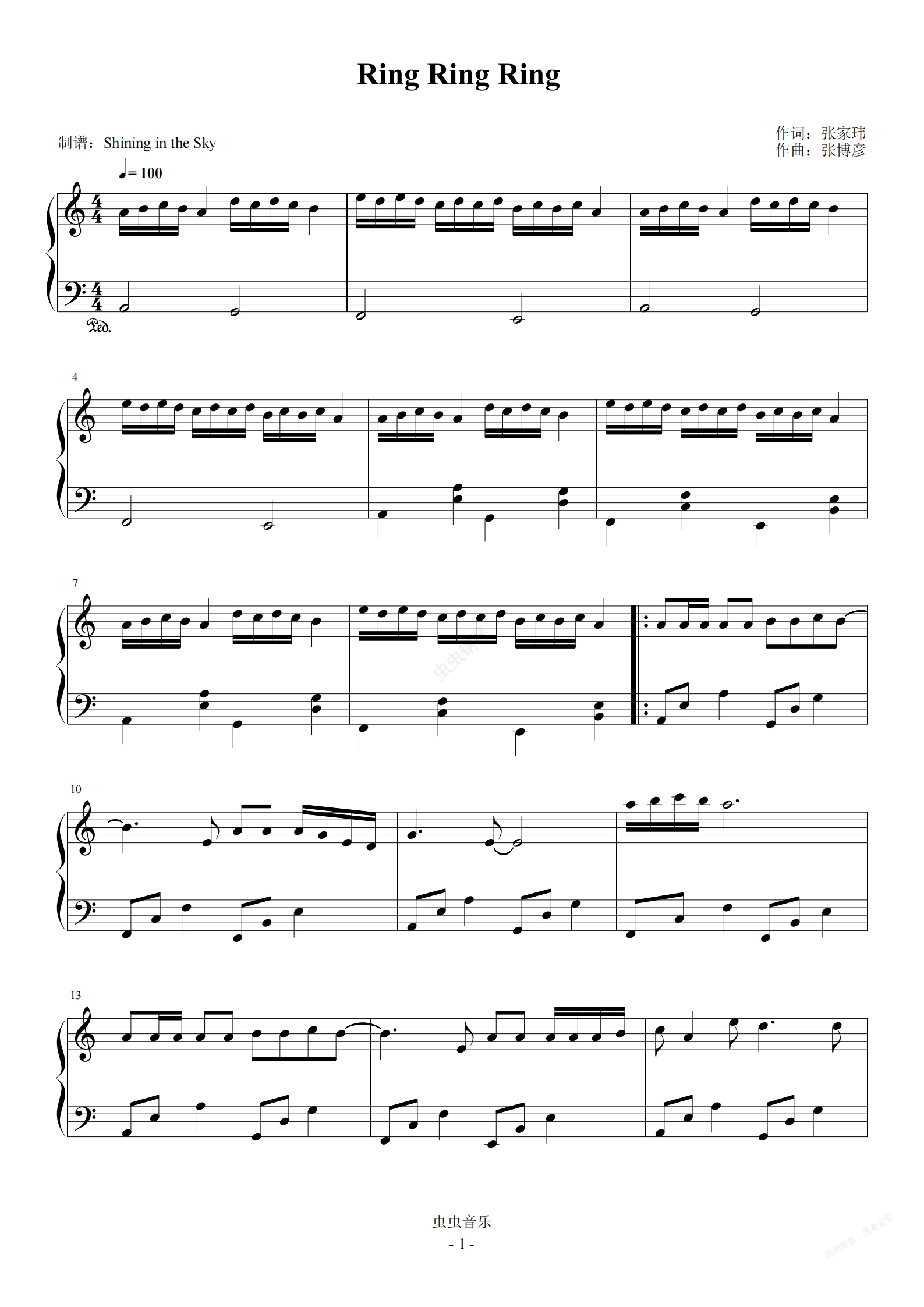 钢琴谱:Ring Ring Ring C调简易版 SHE