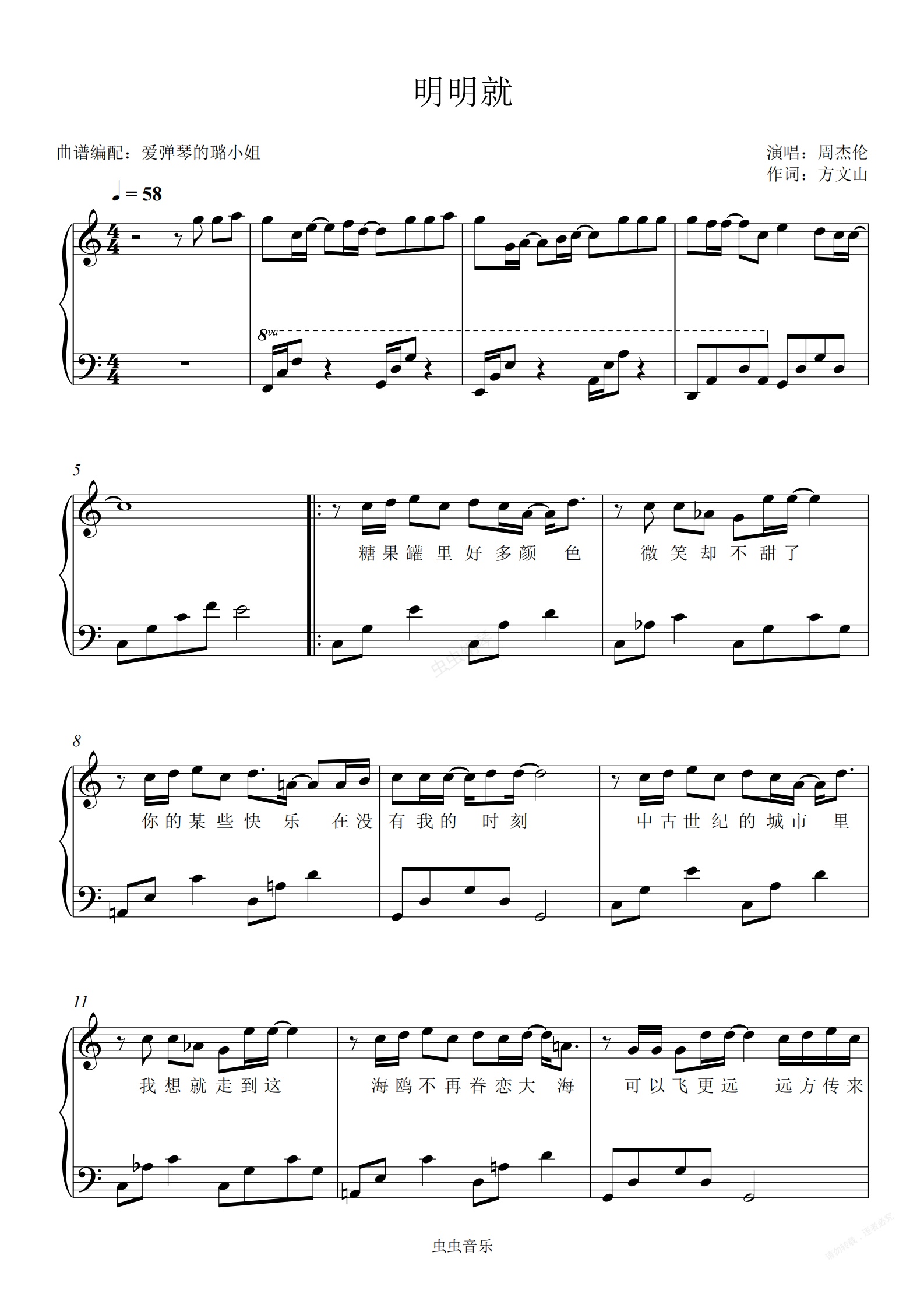 钢琴谱:明明就 - C调 - 极简易上手适合初学者 - 附歌词