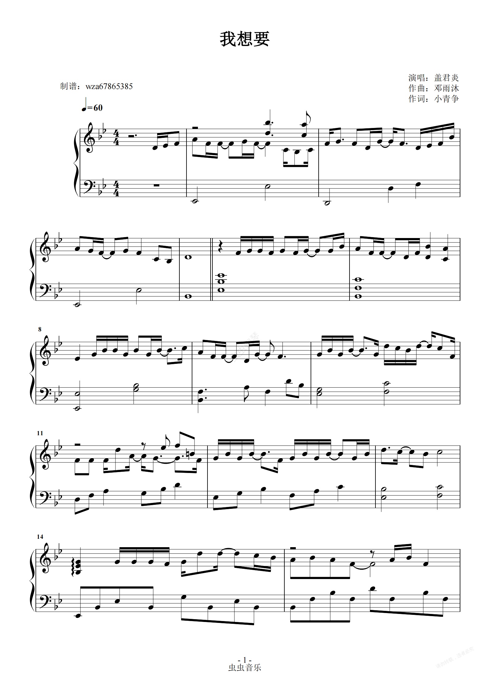 钢琴谱:我想要