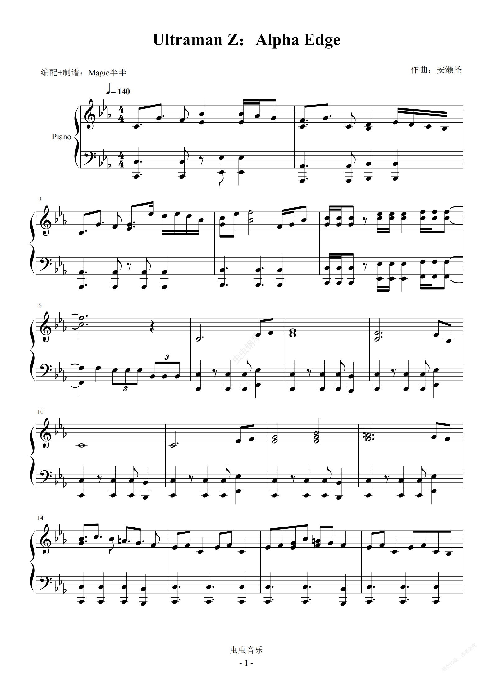 钢琴谱:泽塔奥特曼Alpha战斗形态(多元融合版)