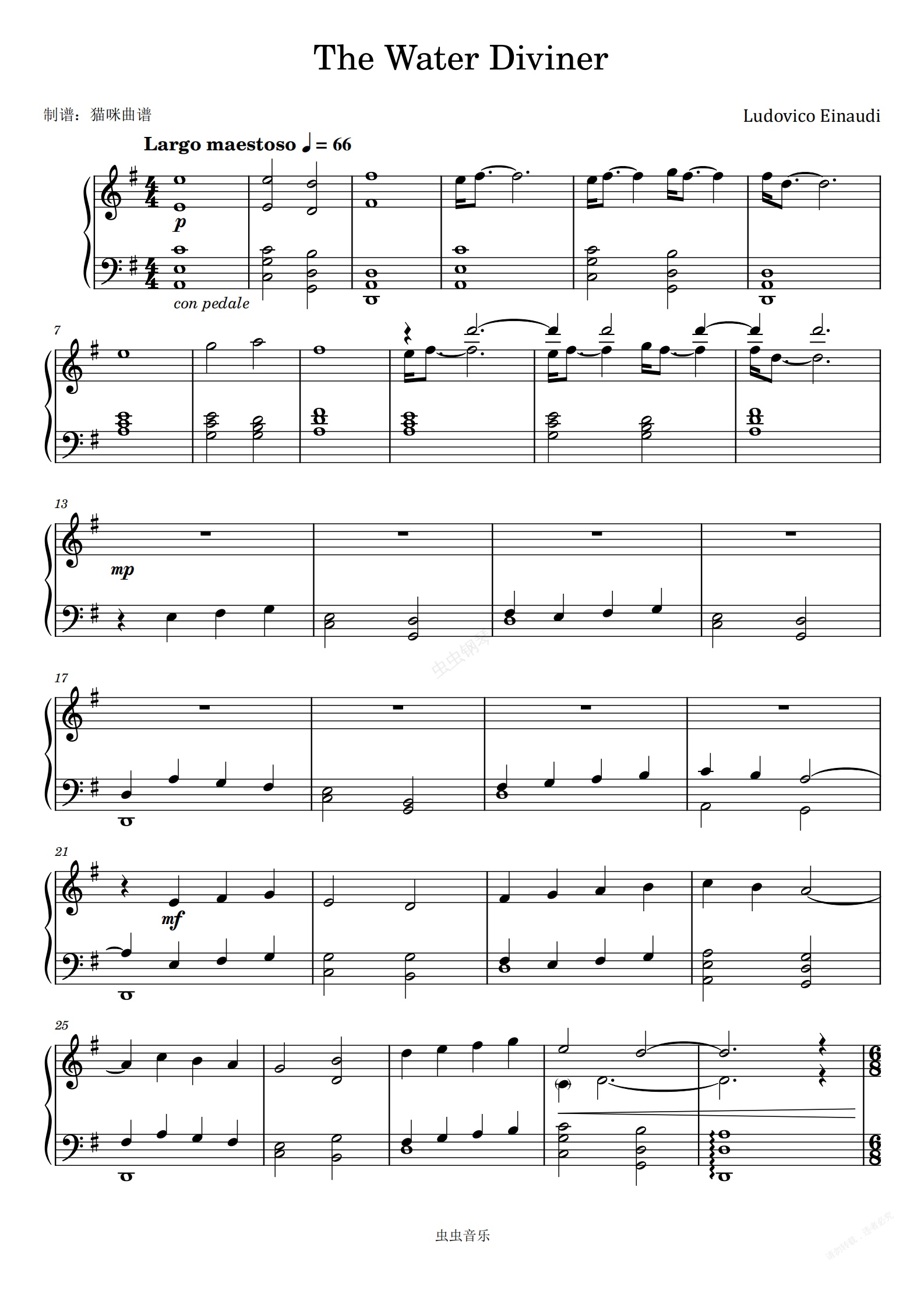 钢琴谱:Ludovico Einaudi-The Water Diviner