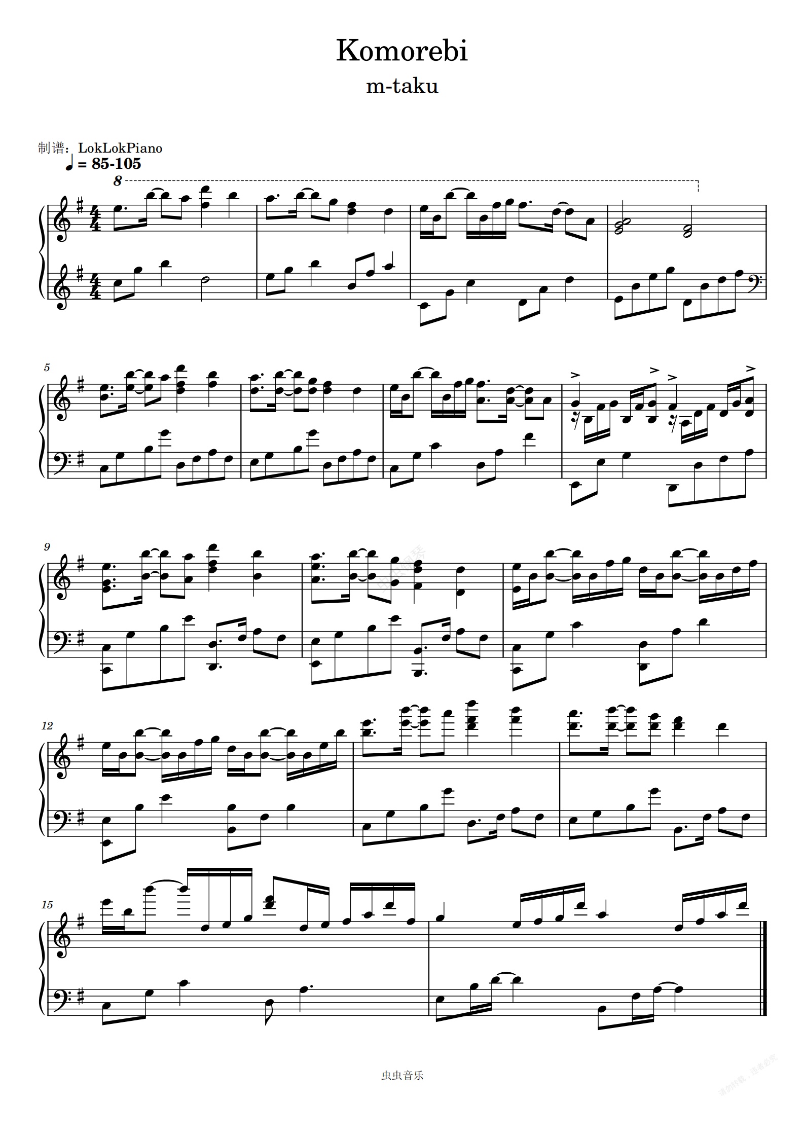 钢琴谱:治愈系 | Komorebi(叶隙间洒落的阳光)| LokLokPiano演奏版
