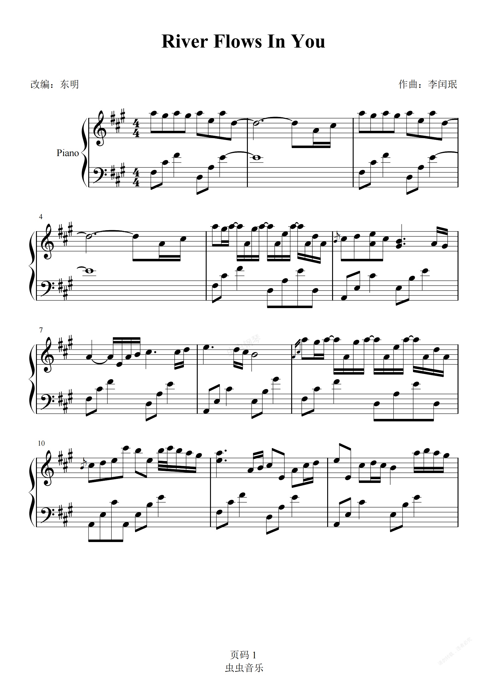 钢琴谱:好听易上手-River Flows In You 李闰珉 深情版