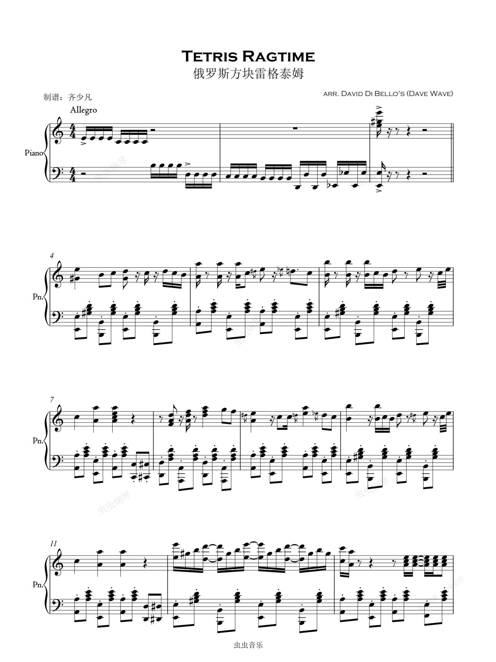 钢琴谱:【爵士】俄罗斯方块雷格泰姆