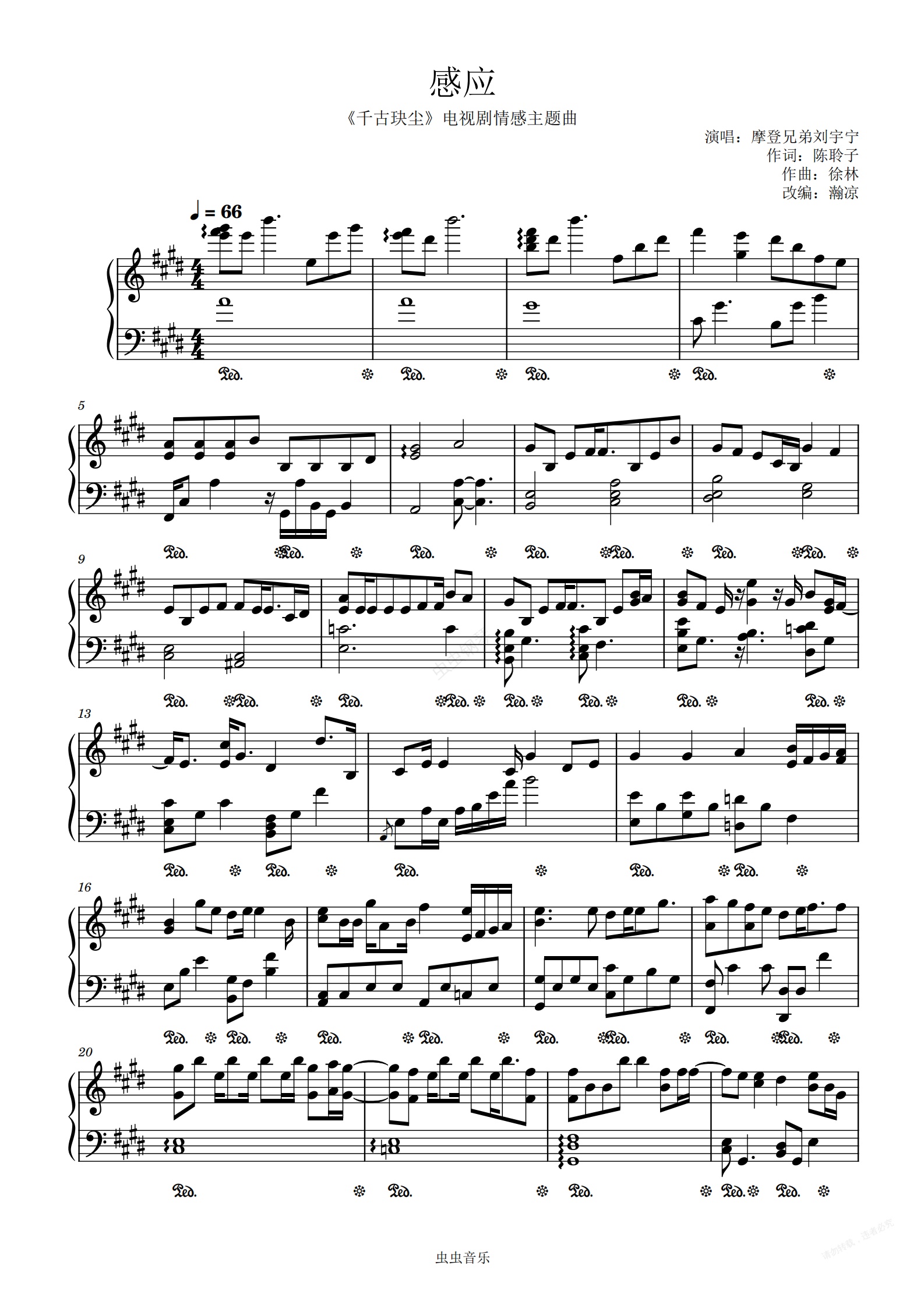 钢琴谱:感应-刘宇宁 《千古玦尘》情感主题曲
