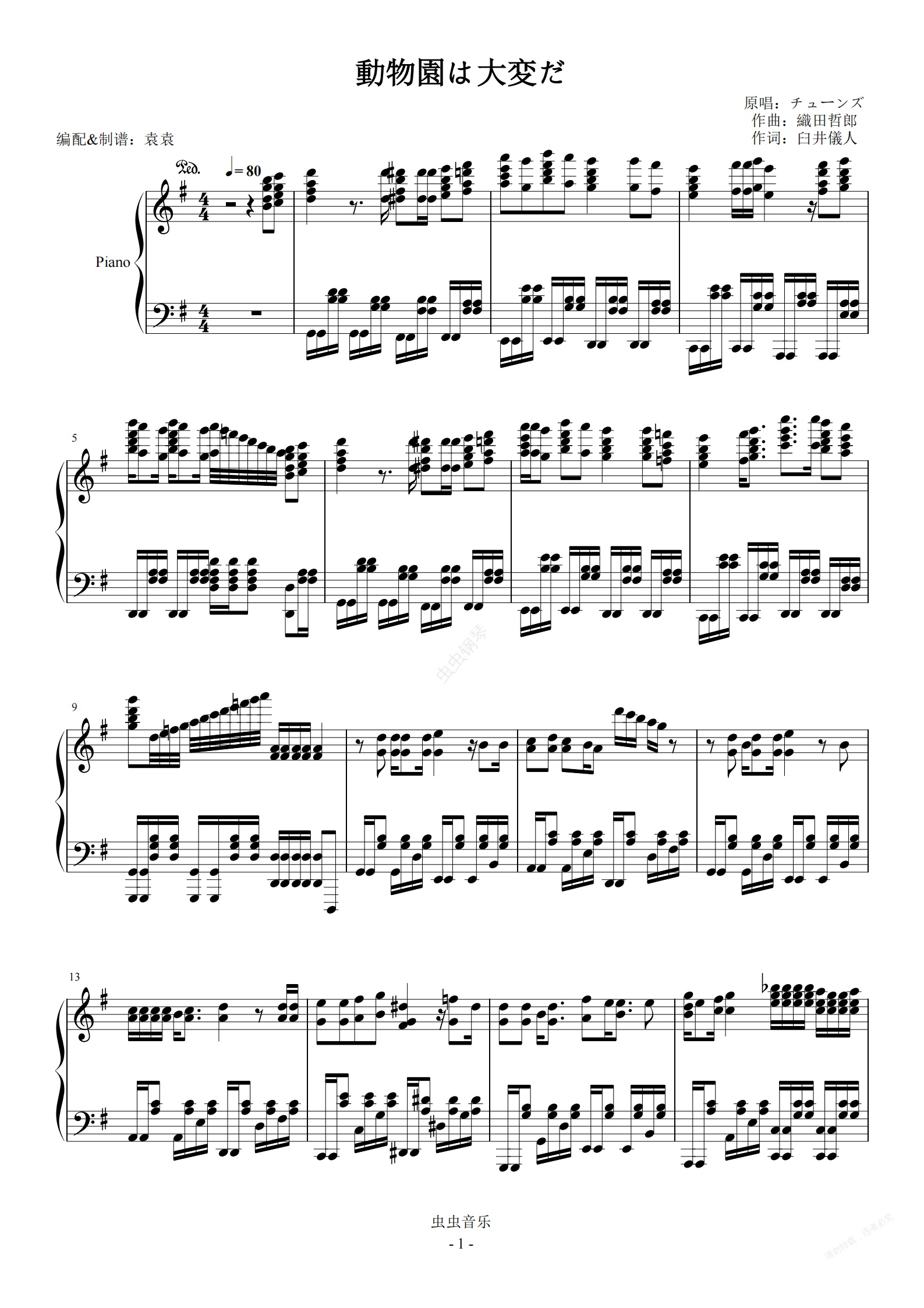 钢琴谱:蜡笔小新OP1動物園は大変だ