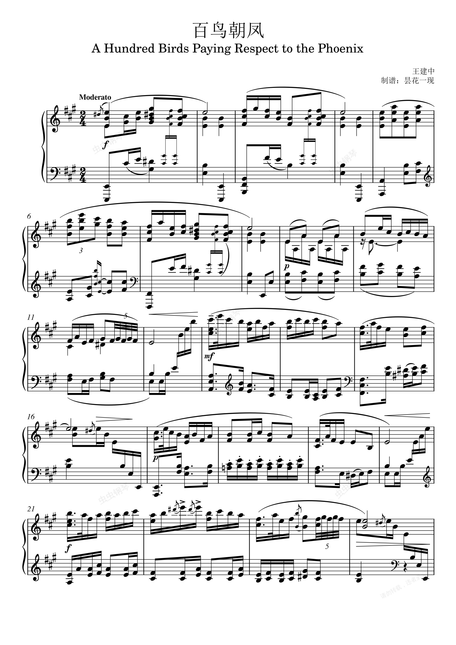 钢琴谱:百鸟朝凤-王建中改编,经典版