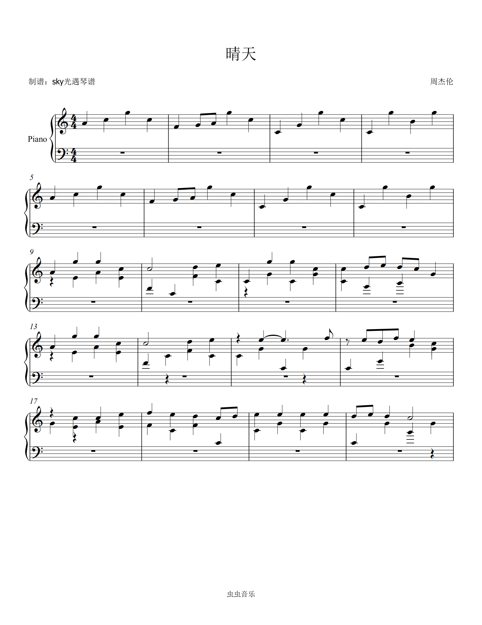 钢琴谱:晴天-周杰伦(sky光遇琴谱)