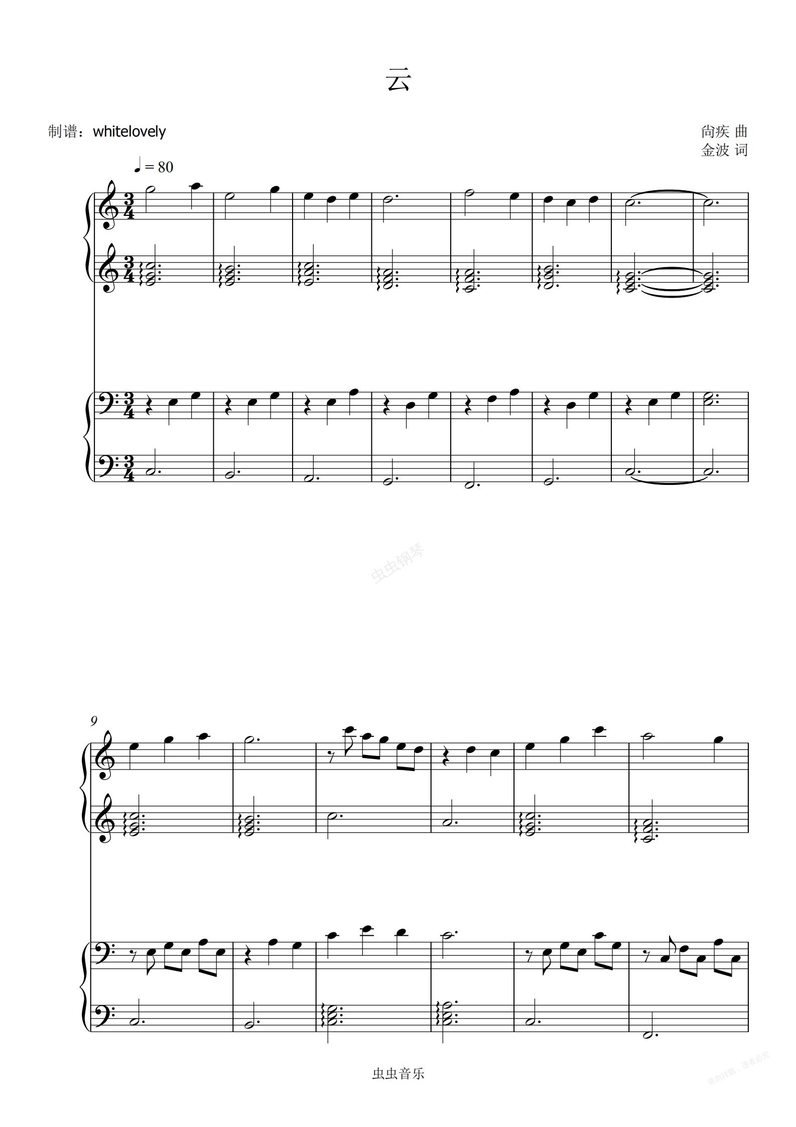 钢琴谱:云 C调四手联弹
