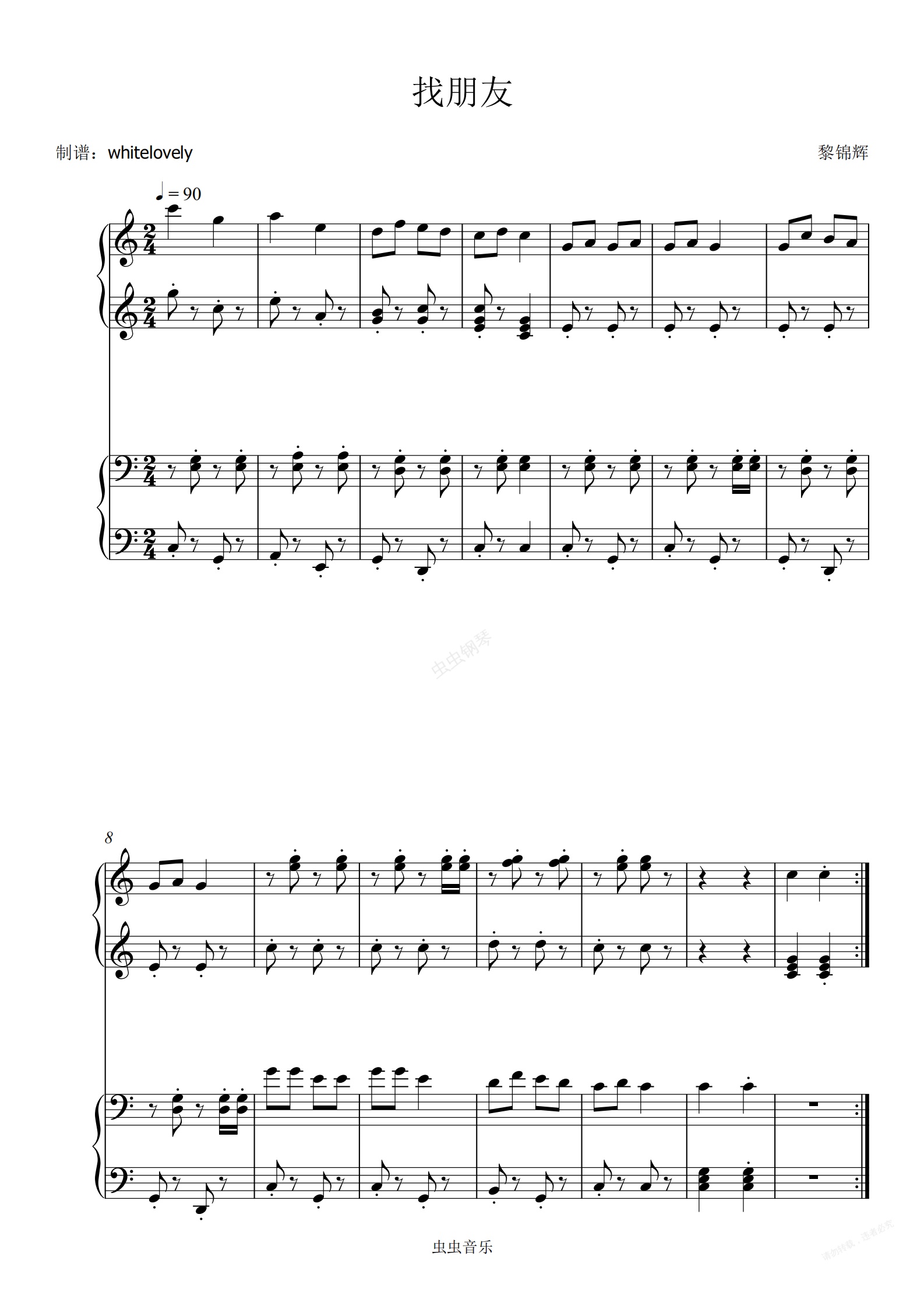 钢琴谱:找朋友 C调四手联弹