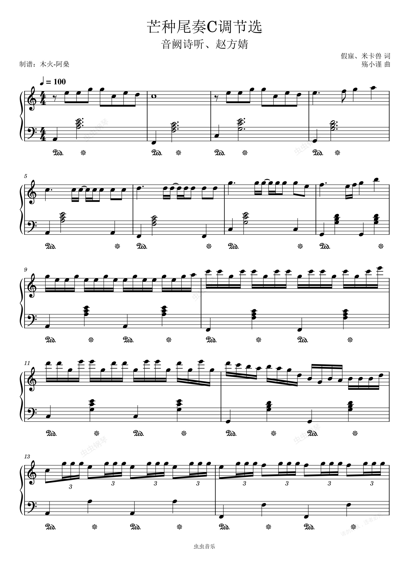 钢琴谱:芒种尾奏-C调节选