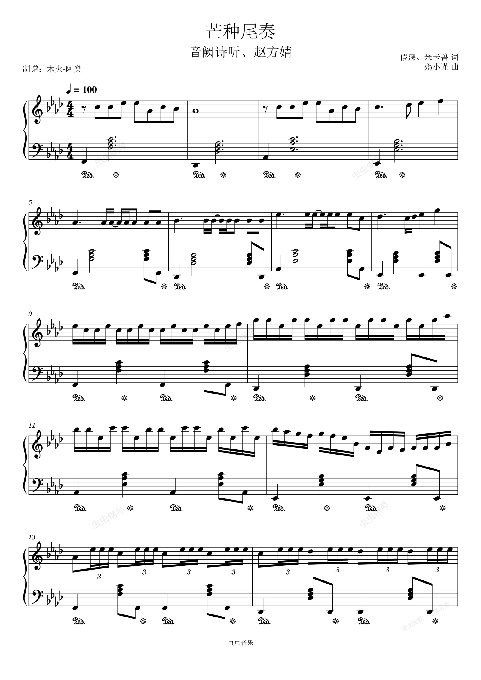 钢琴谱:芒种尾奏—原调(bA调)