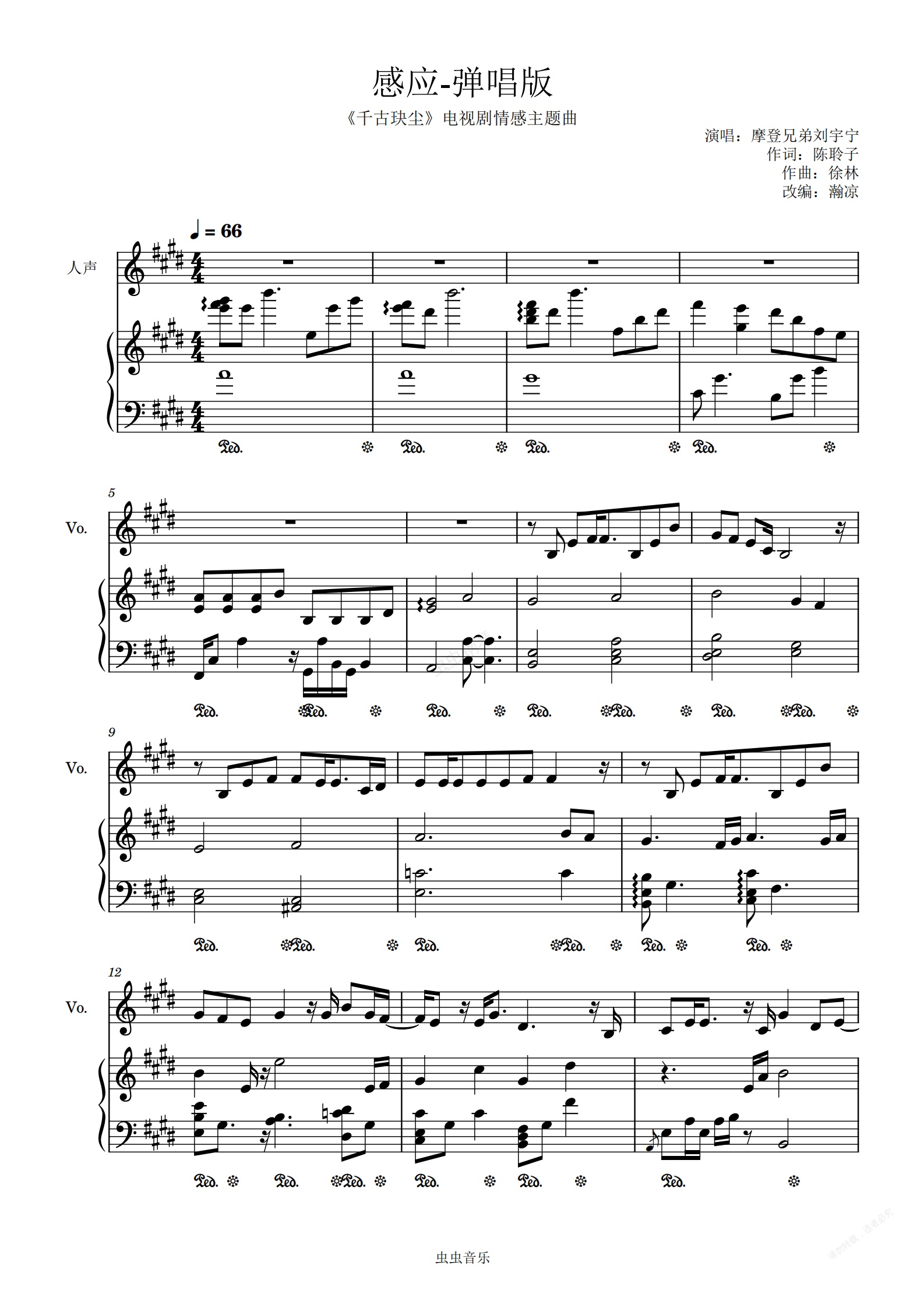 钢琴谱:感应-刘宇宁 弹唱版《千古玦尘》情感主题曲