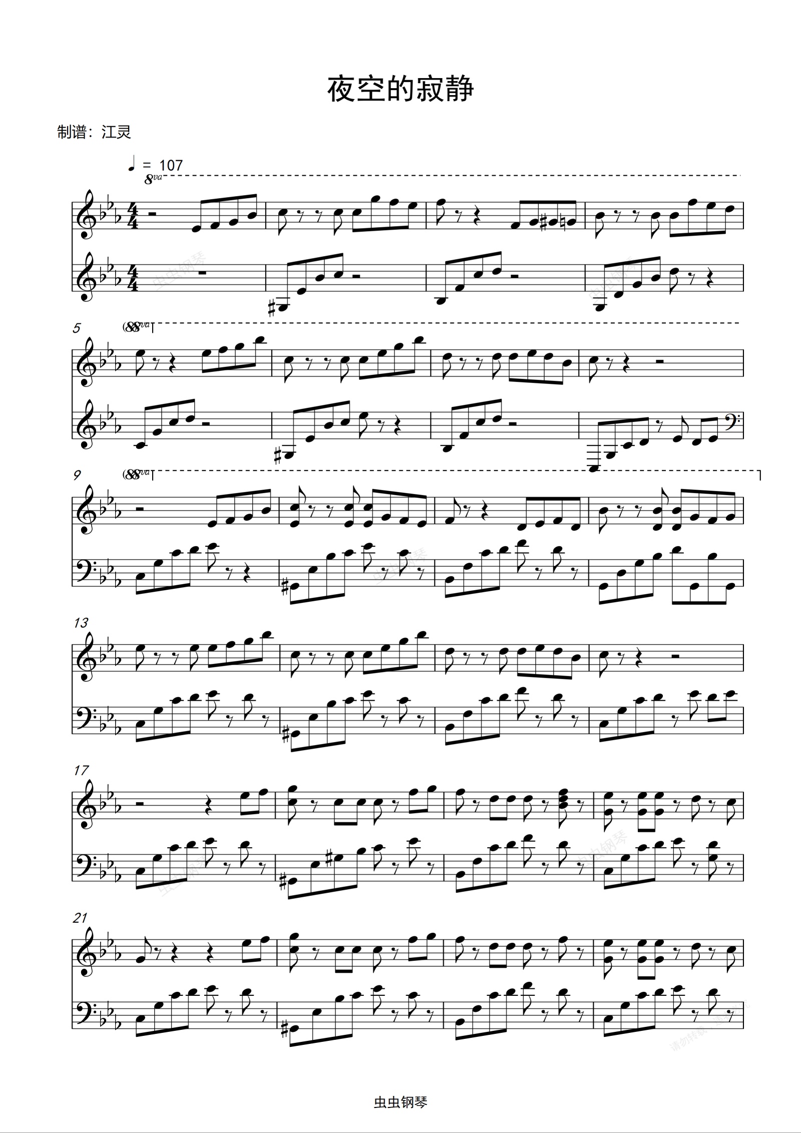 钢琴谱:夜空的寂静 【超唯美】