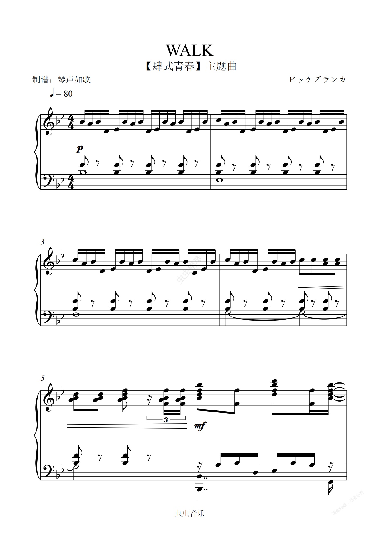 钢琴谱:《肆式青春》主题曲-WALK 【超好听钢琴独奏】