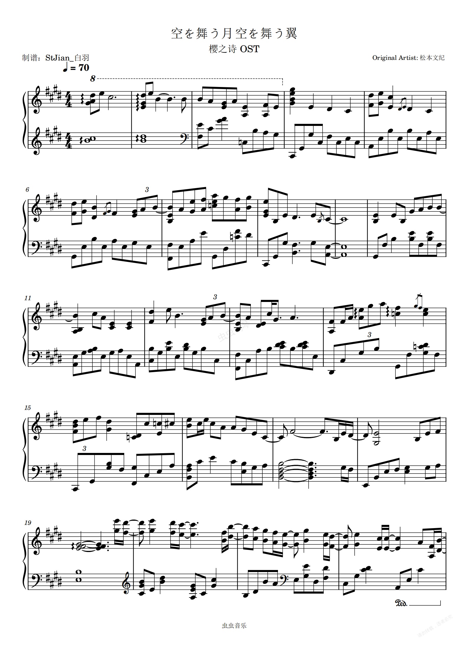 钢琴谱:樱之诗 OST - 「空を舞う月_空を舞う翼」