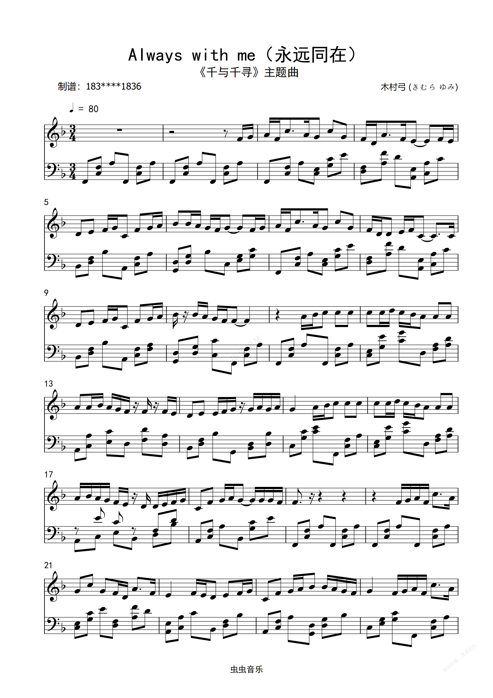 钢琴谱:いつも何度でも (永远同在)【易上手】