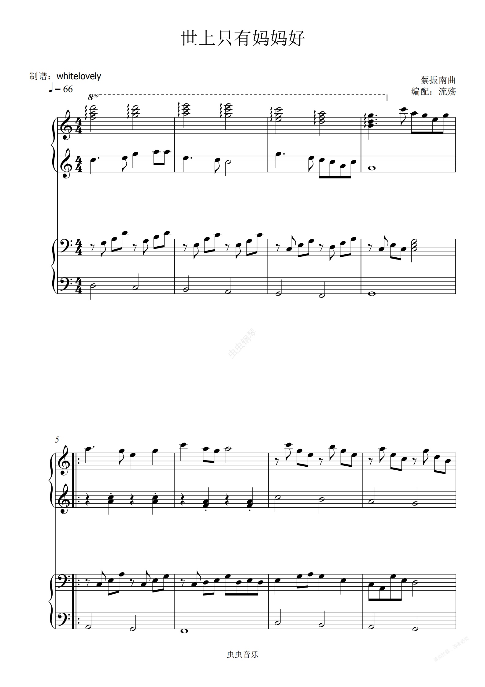 钢琴谱:世上只有妈妈好 C调四手联弹