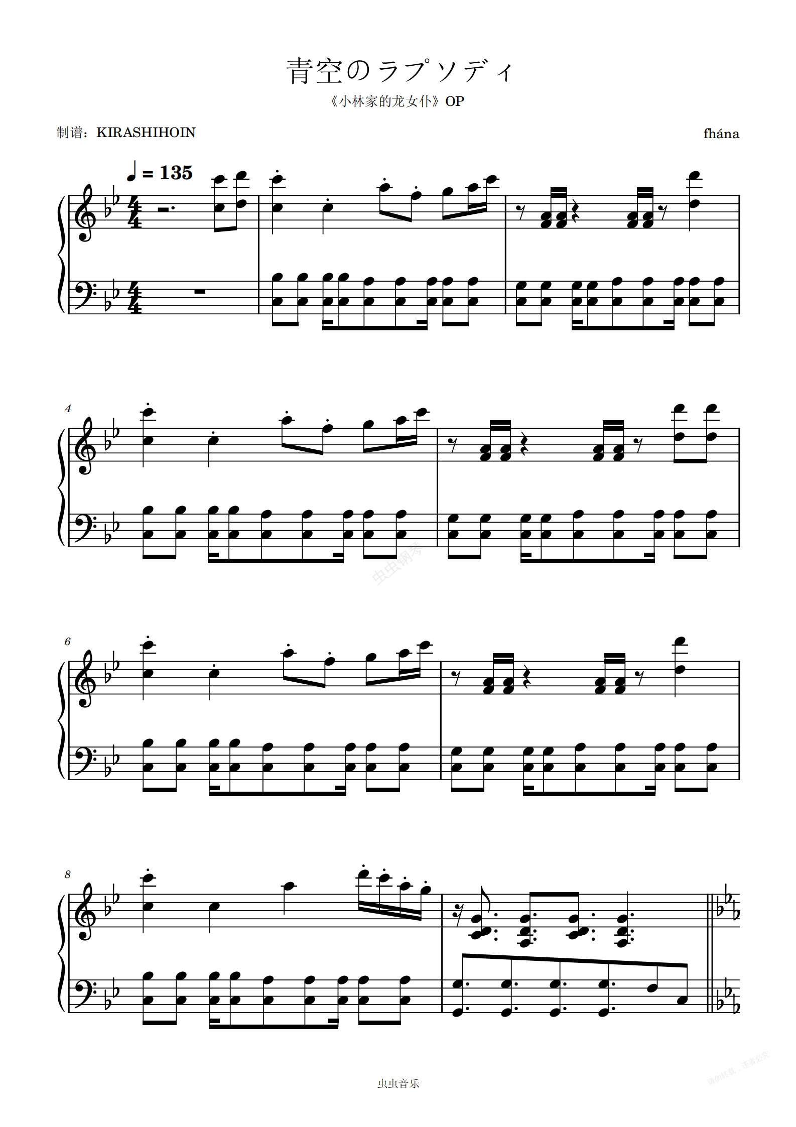 钢琴谱:青空的狂想曲/青空のラプソディ(《小林家的龙女仆》OP)