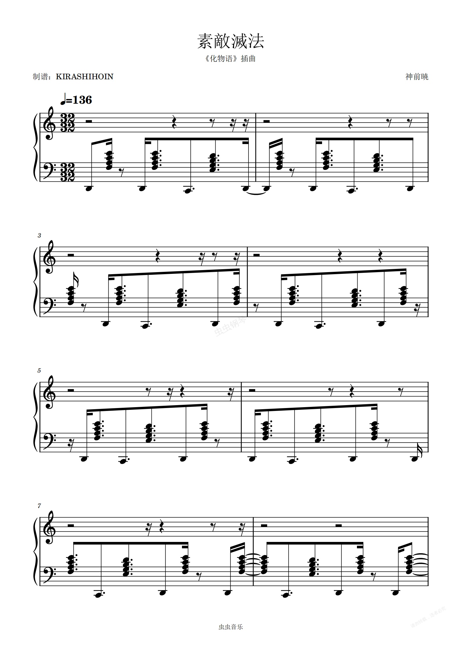 钢琴谱:素敵滅法(《化物语》插曲)- 神前晓