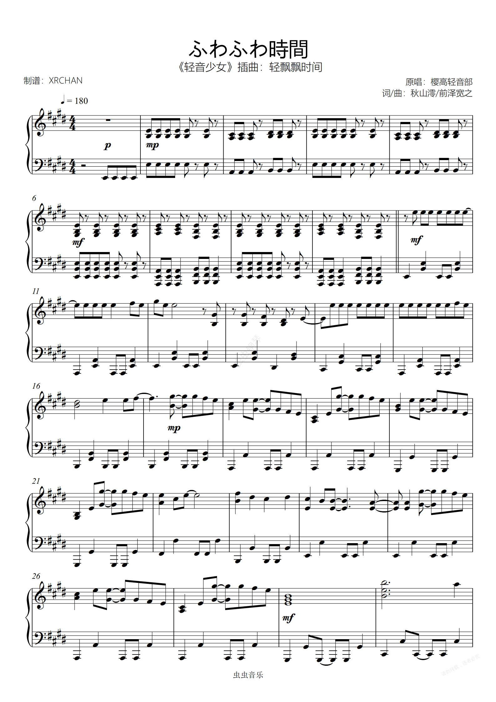 钢琴谱:滑滑蛋 轻飘飘时间《轻音少女》插曲 初级
