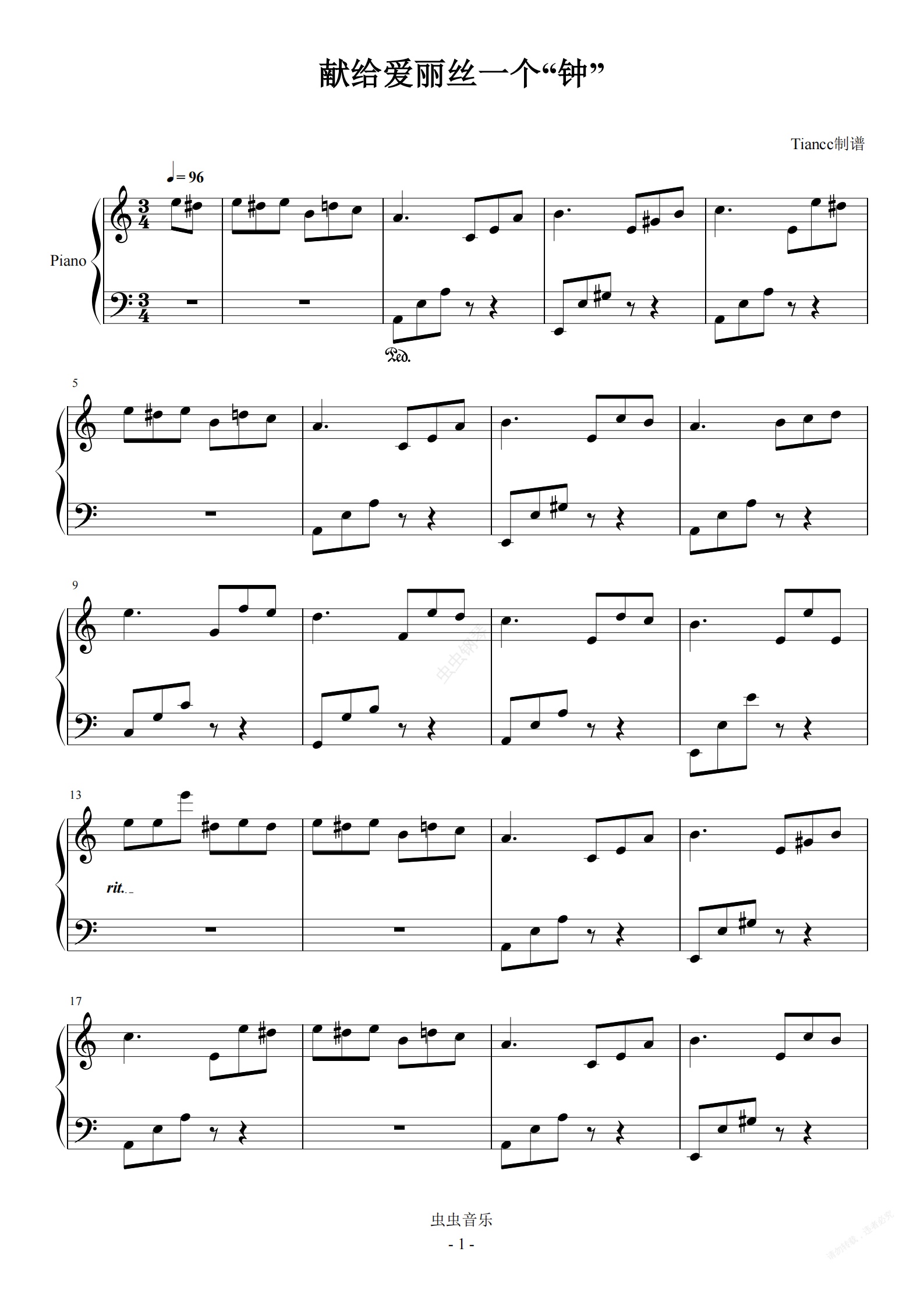 钢琴谱:《献给爱丽丝一个“钟”》欢乐魔性改编,599+难度