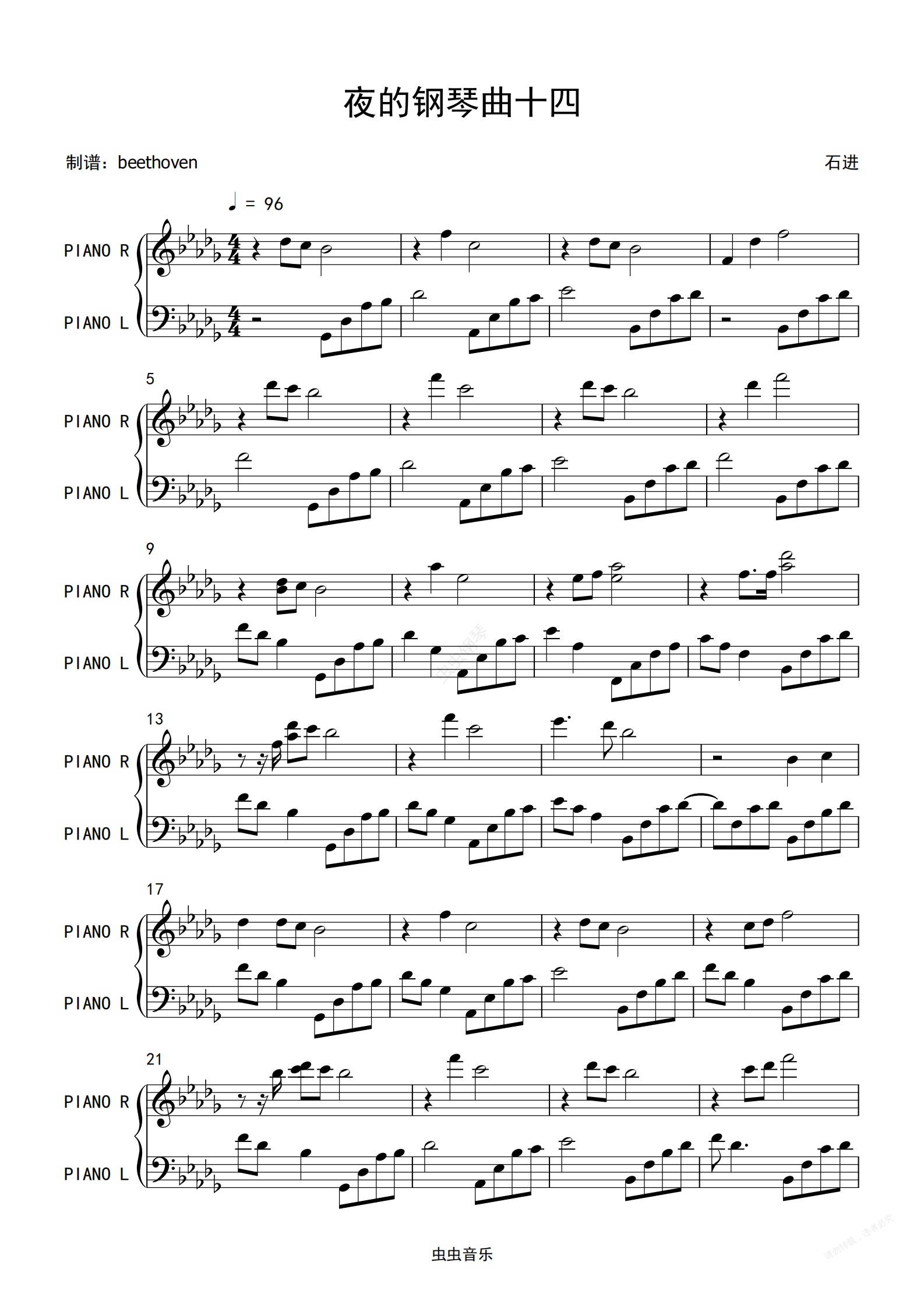 钢琴谱:夜的钢琴曲(十四)_石进_原版独奏