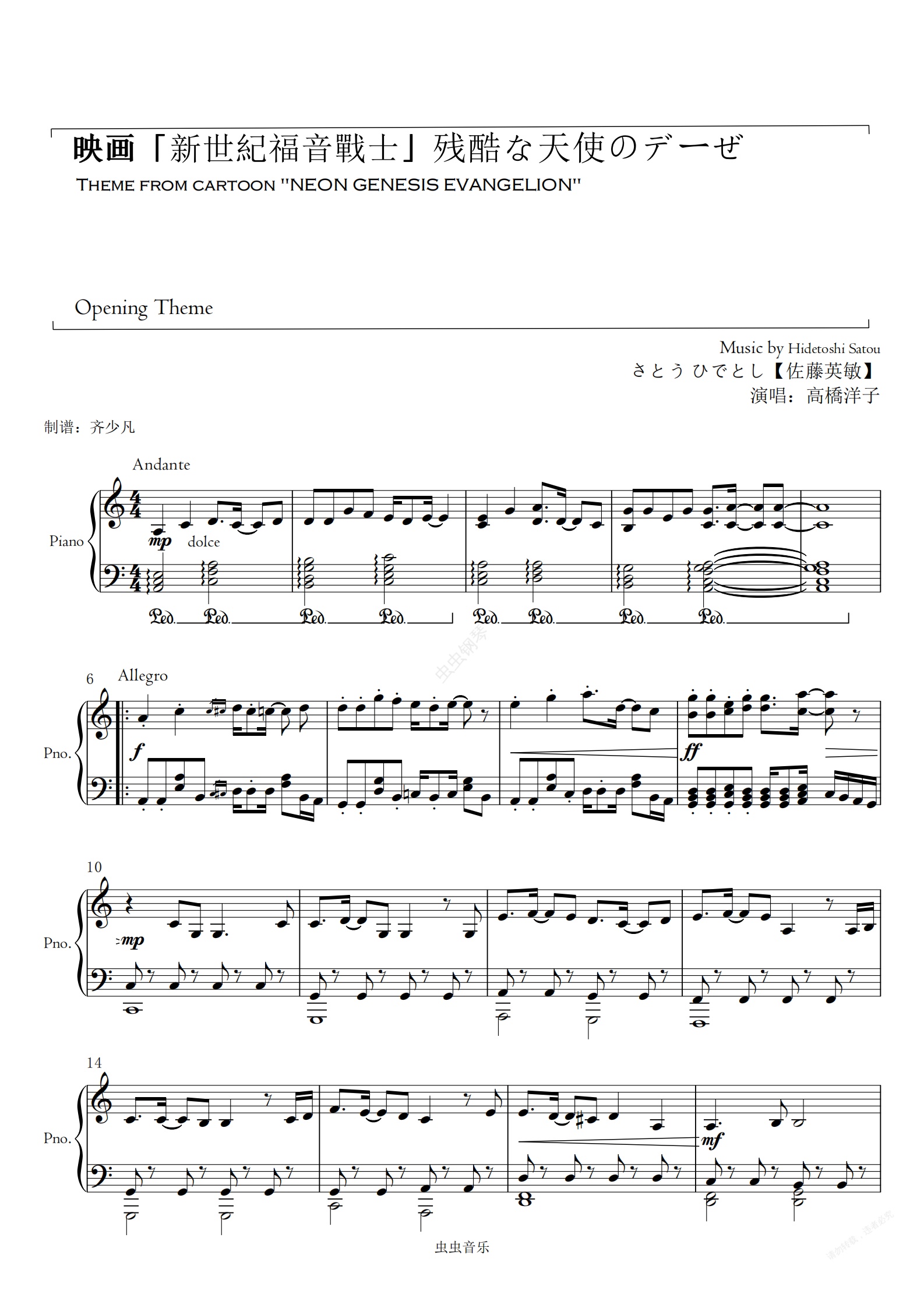 钢琴谱:残酷天使的行动纲领-残酷な天使のデーぜ