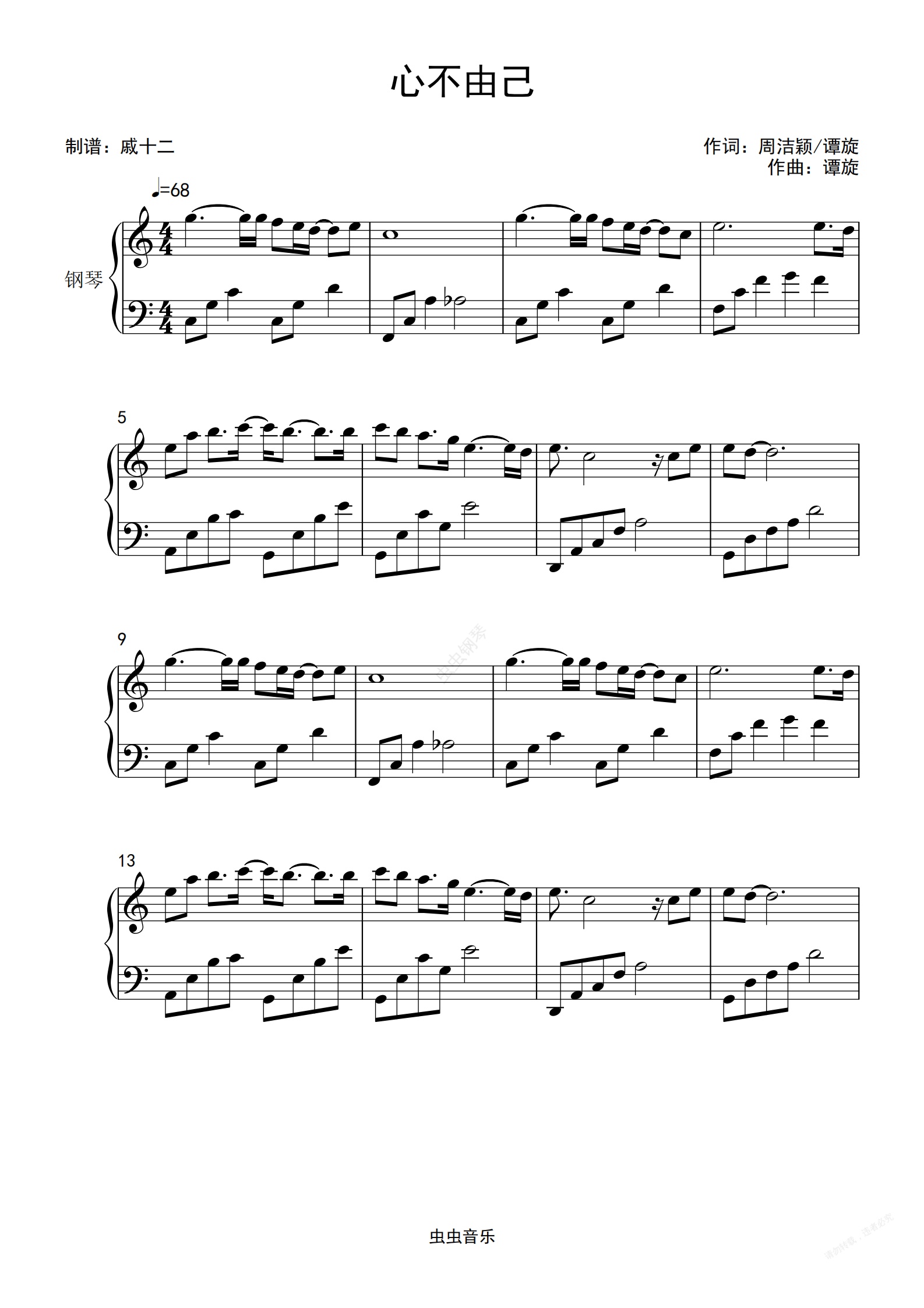 钢琴谱:心不由己《择天记》插曲-C调简单版