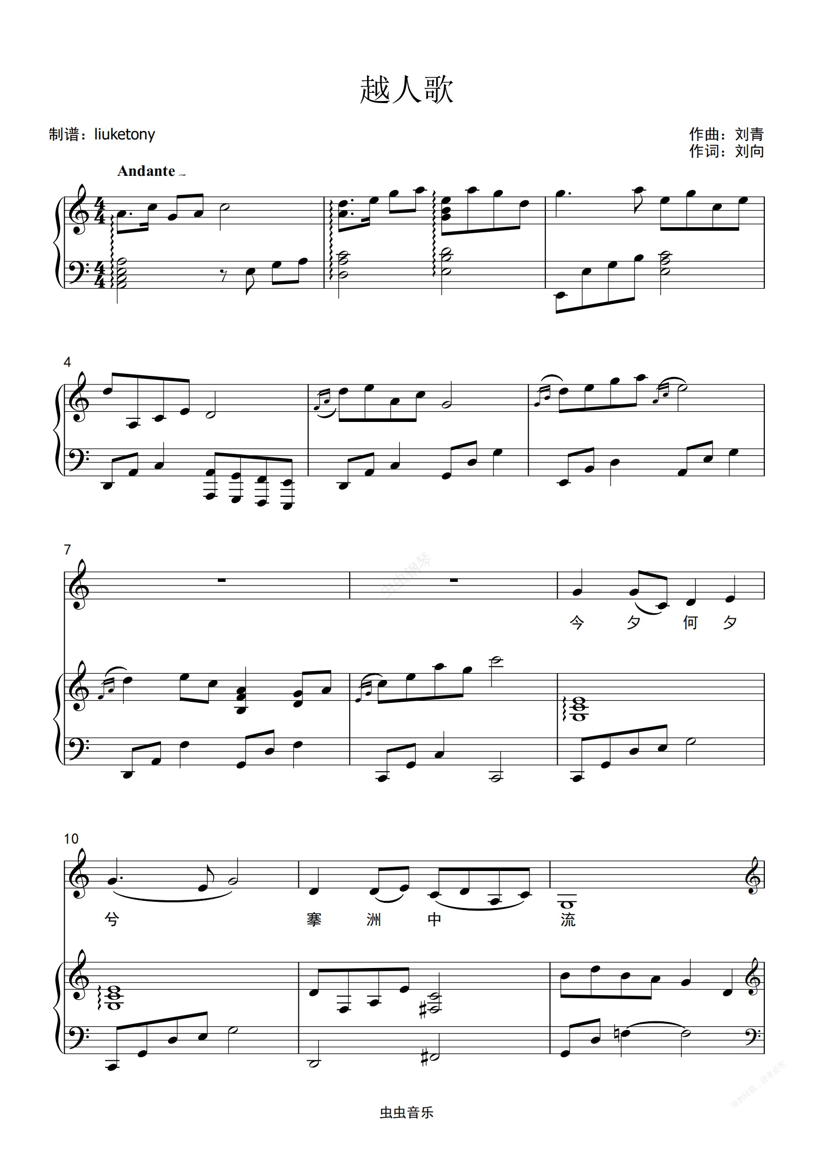 钢琴谱:越人歌 - 宋祖英 钢琴伴奏版