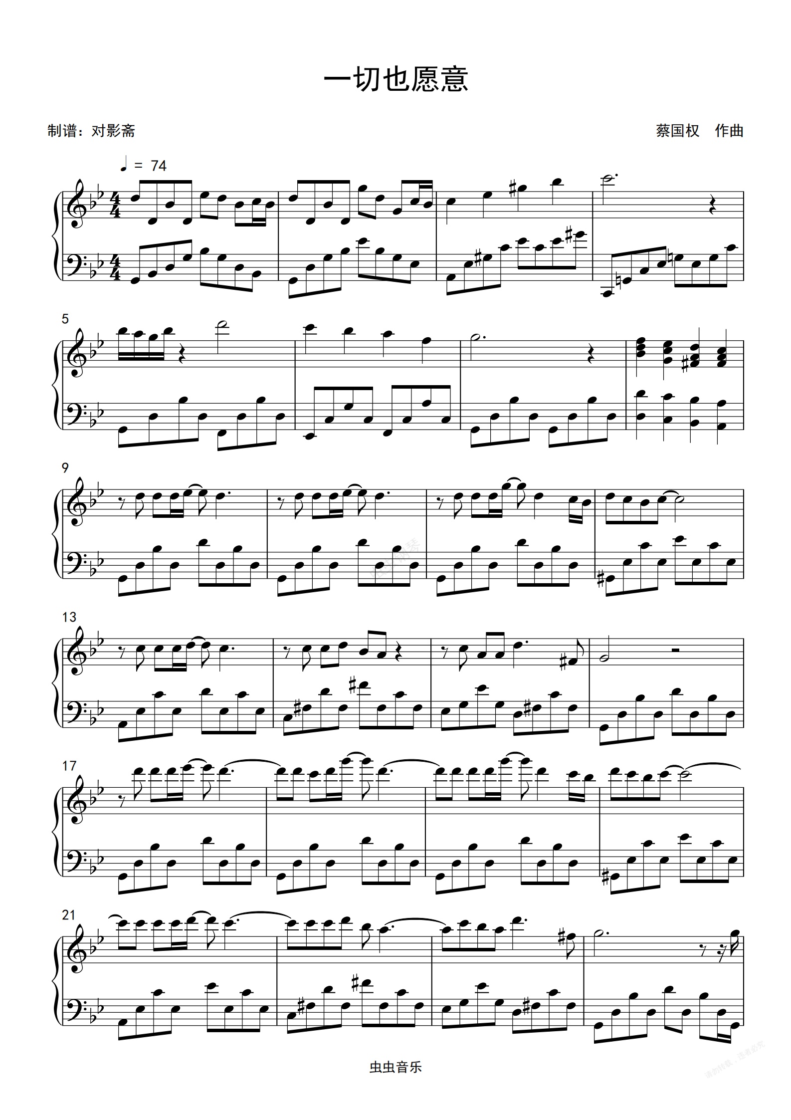 钢琴谱:一切也愿意-关淑怡