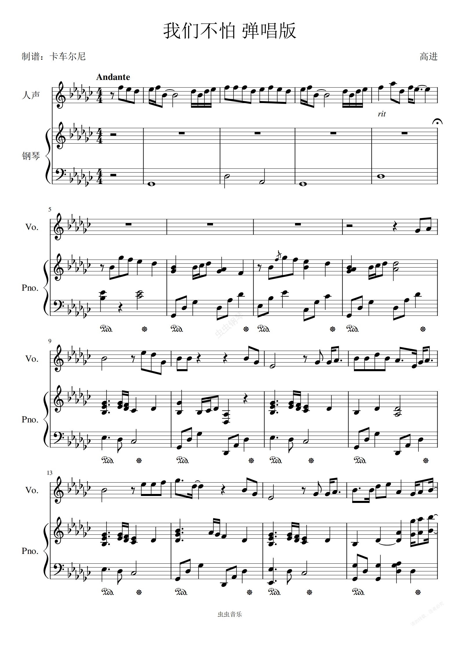 钢琴谱:我们不怕 少升降号弹唱版 《中国医生》电影主题曲