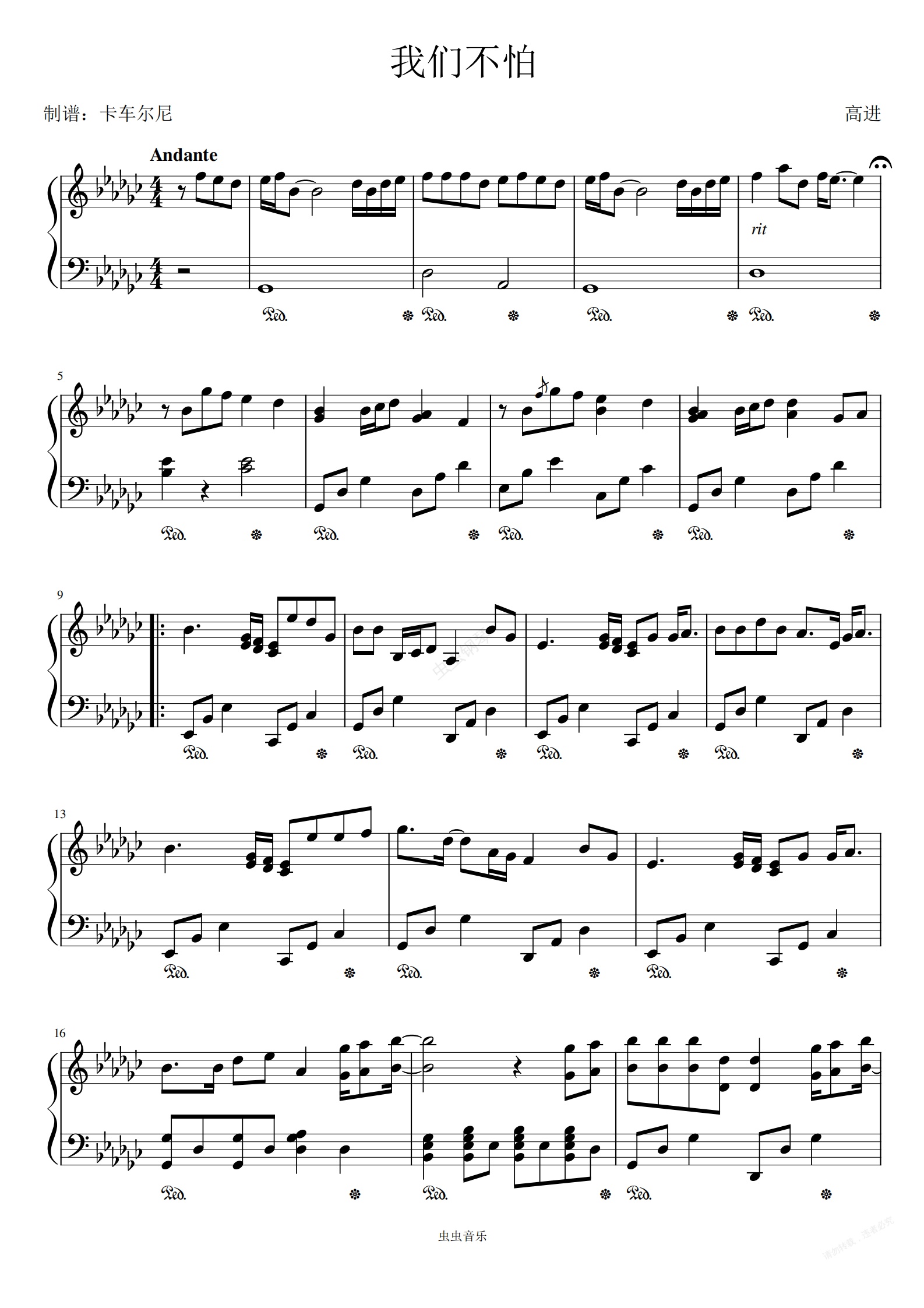 钢琴谱:我们不怕 原调版