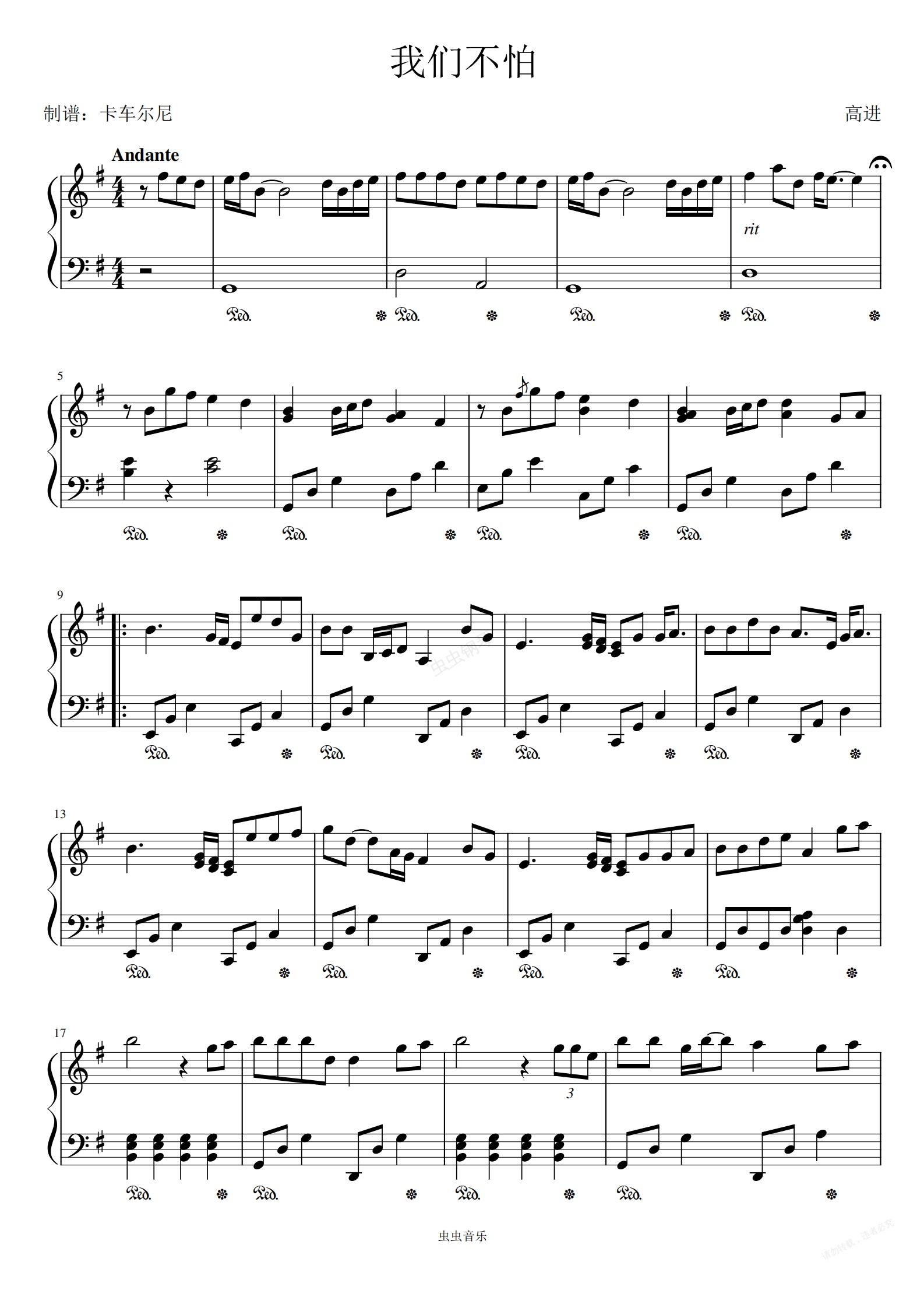钢琴谱:中国医生 电影主题曲 我们不怕 少升降号G调简化版