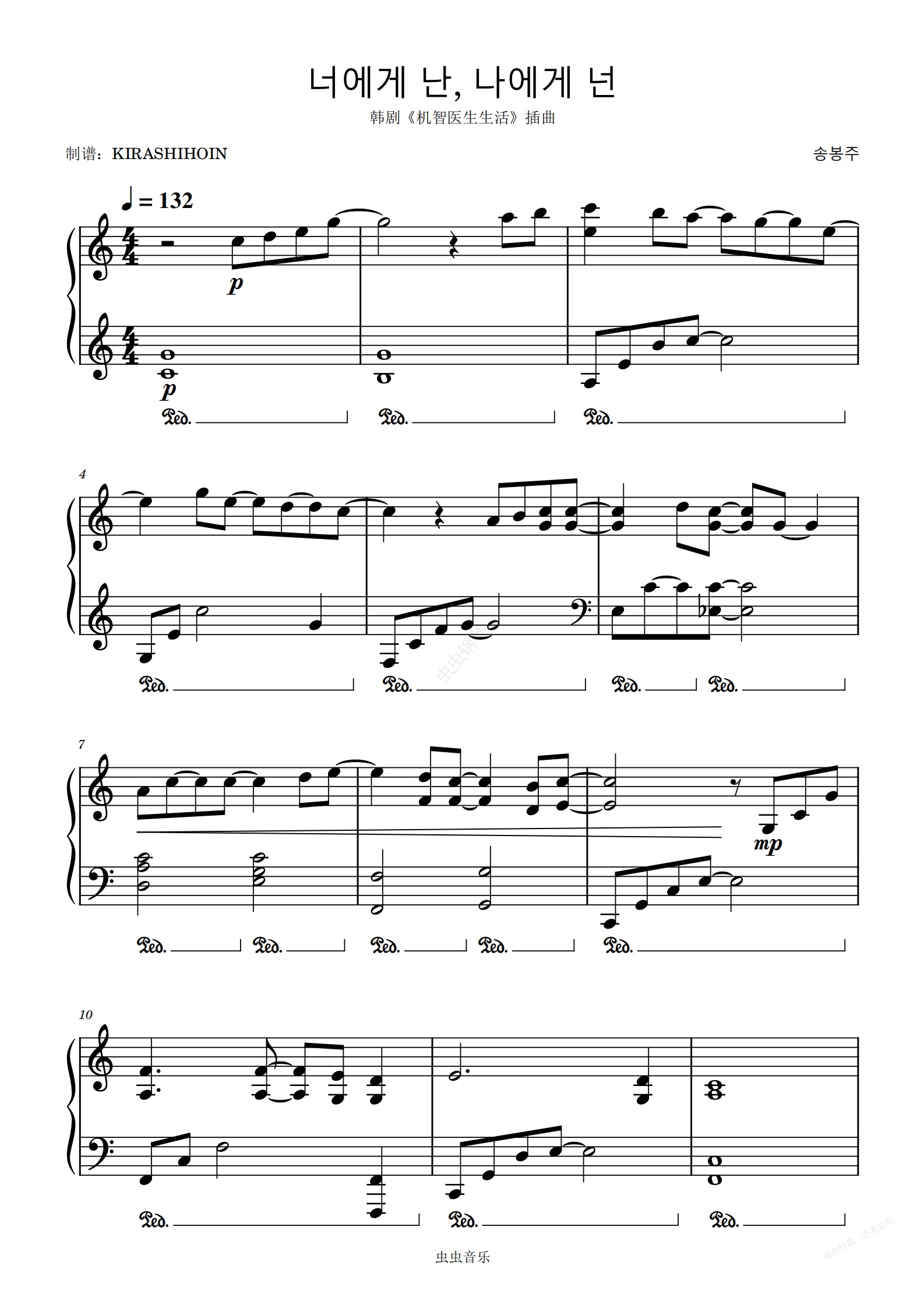 钢琴谱:我对于你,你对于我/Me To You, You To Me/너에게 난, 나에게 넌(韩剧《机智医生生活》插曲)- Mido and Falasol (미도와 파라솔)