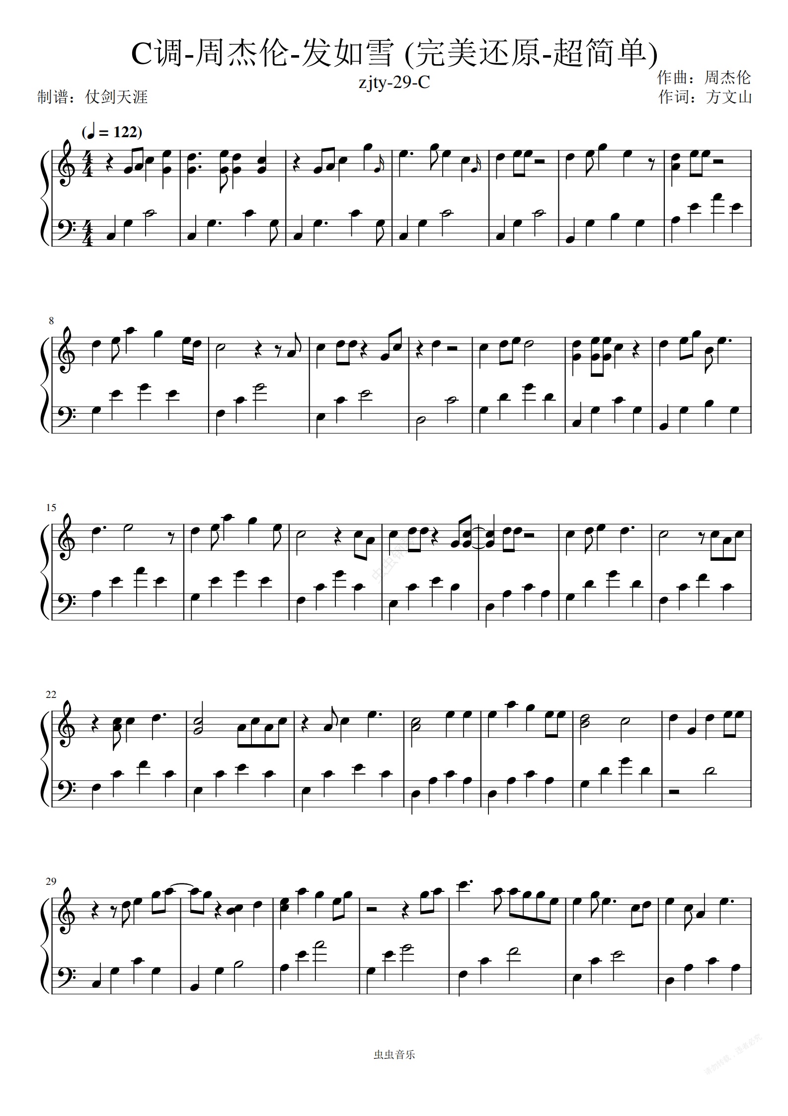 钢琴谱:C调-周杰伦-发如雪 (完美还原-超简单)