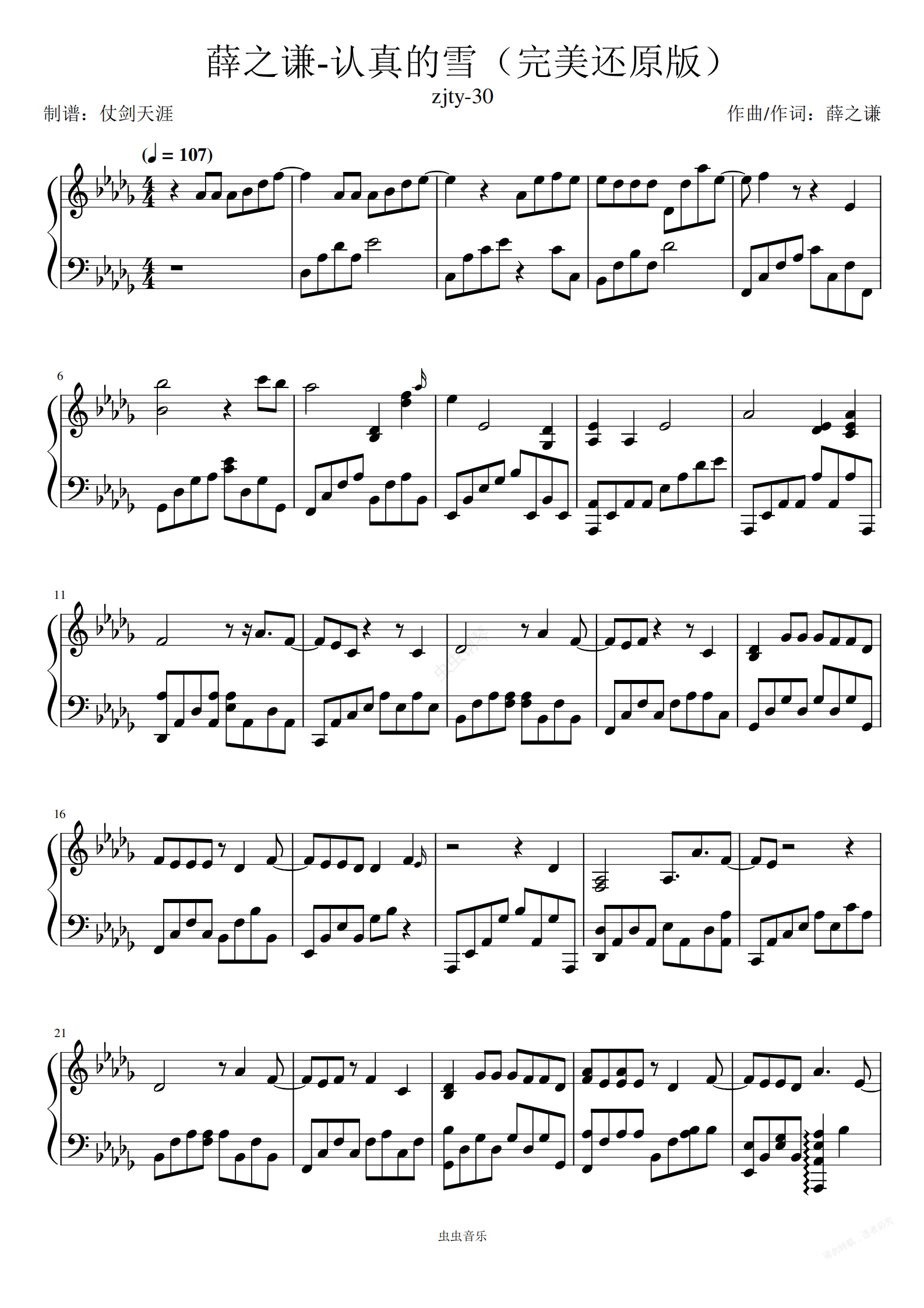 钢琴谱:薛之谦-认真的雪(完美还原版)
