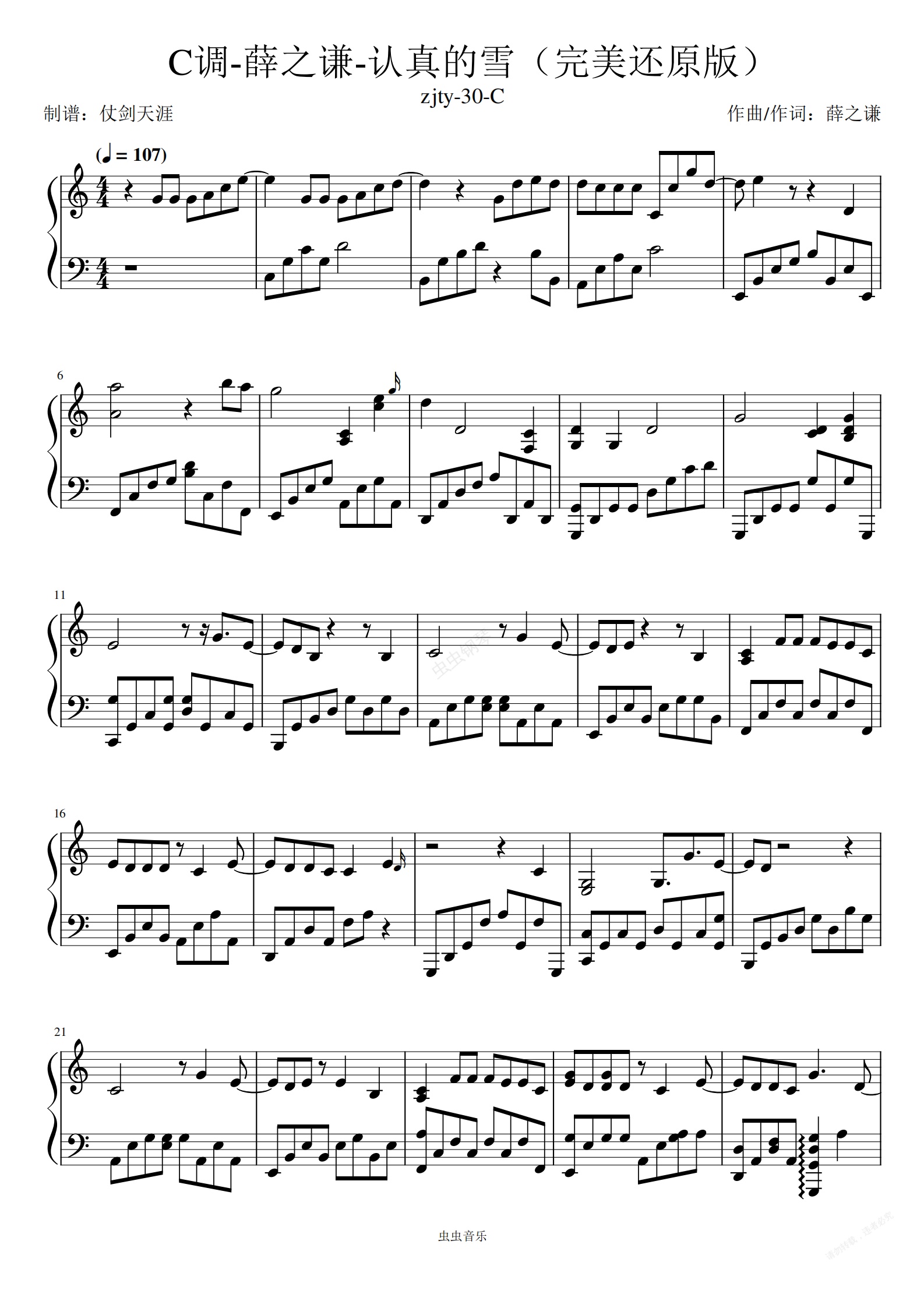 钢琴谱:C调-薛之谦-认真的雪(完美还原版)
