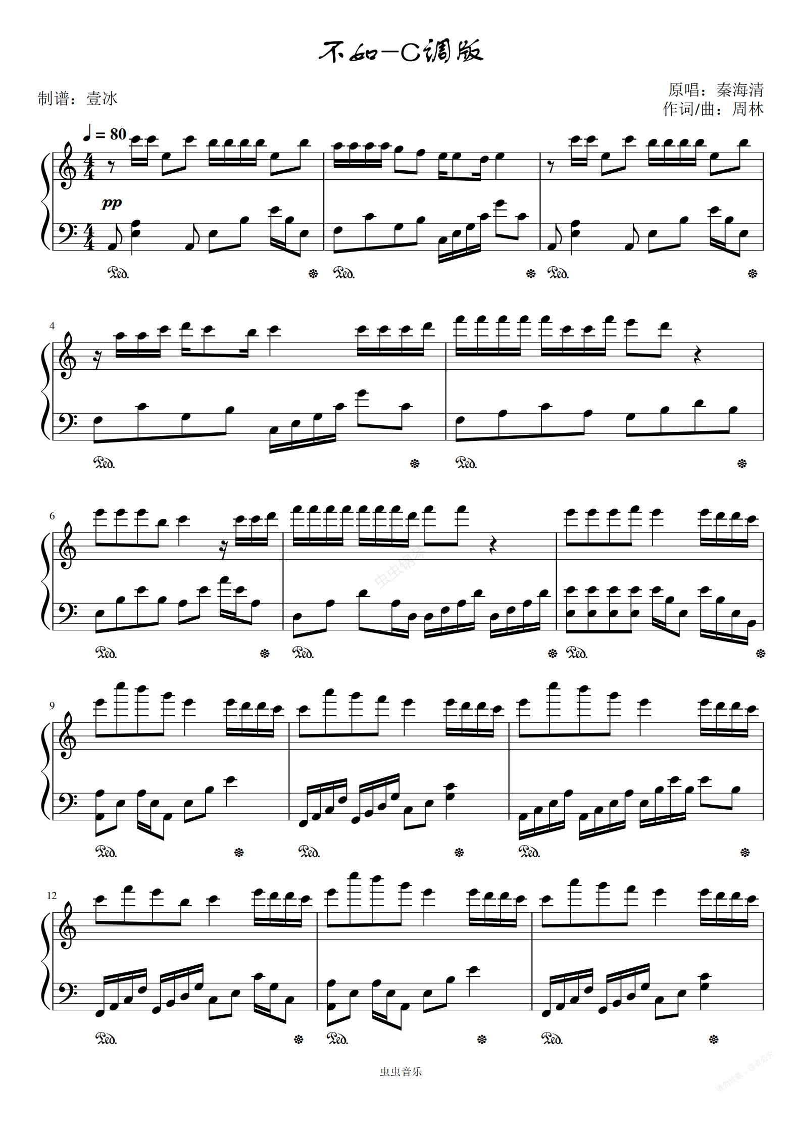 钢琴谱:不如//秦海清-C调简单易上手