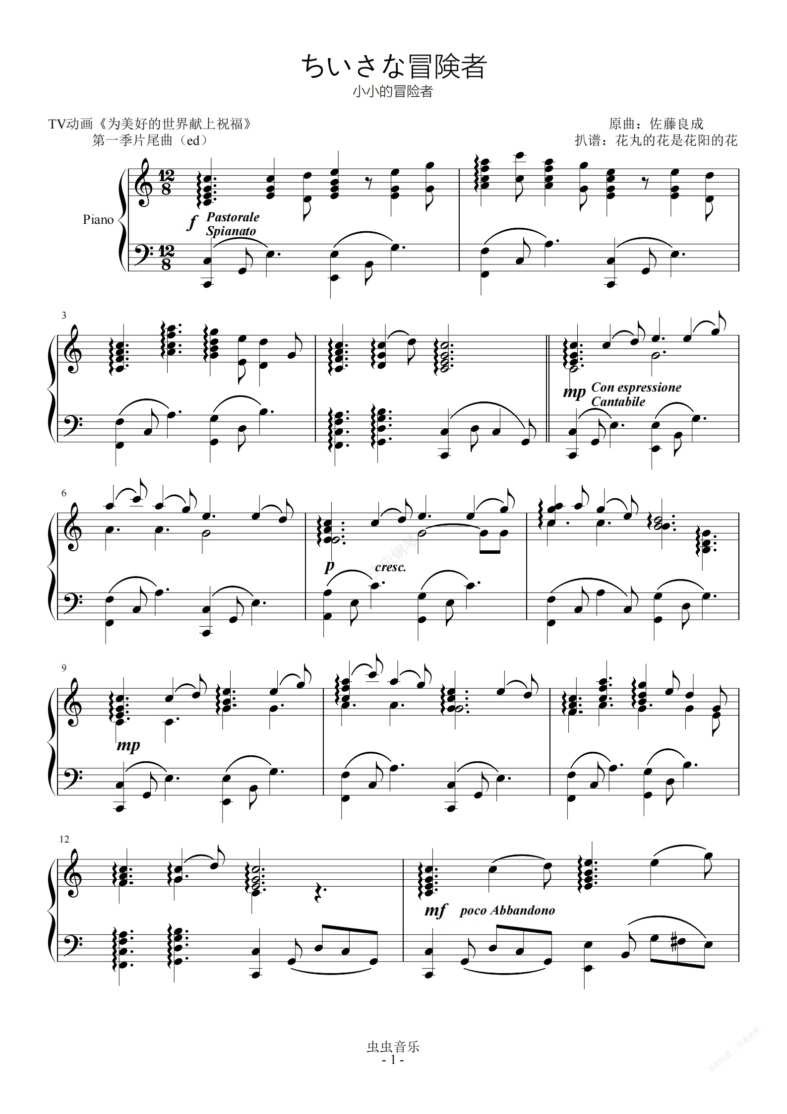 钢琴谱:【经典番】为美好的世界献上祝福第一季ed~ちいさな冒険者(小小的冒险者)