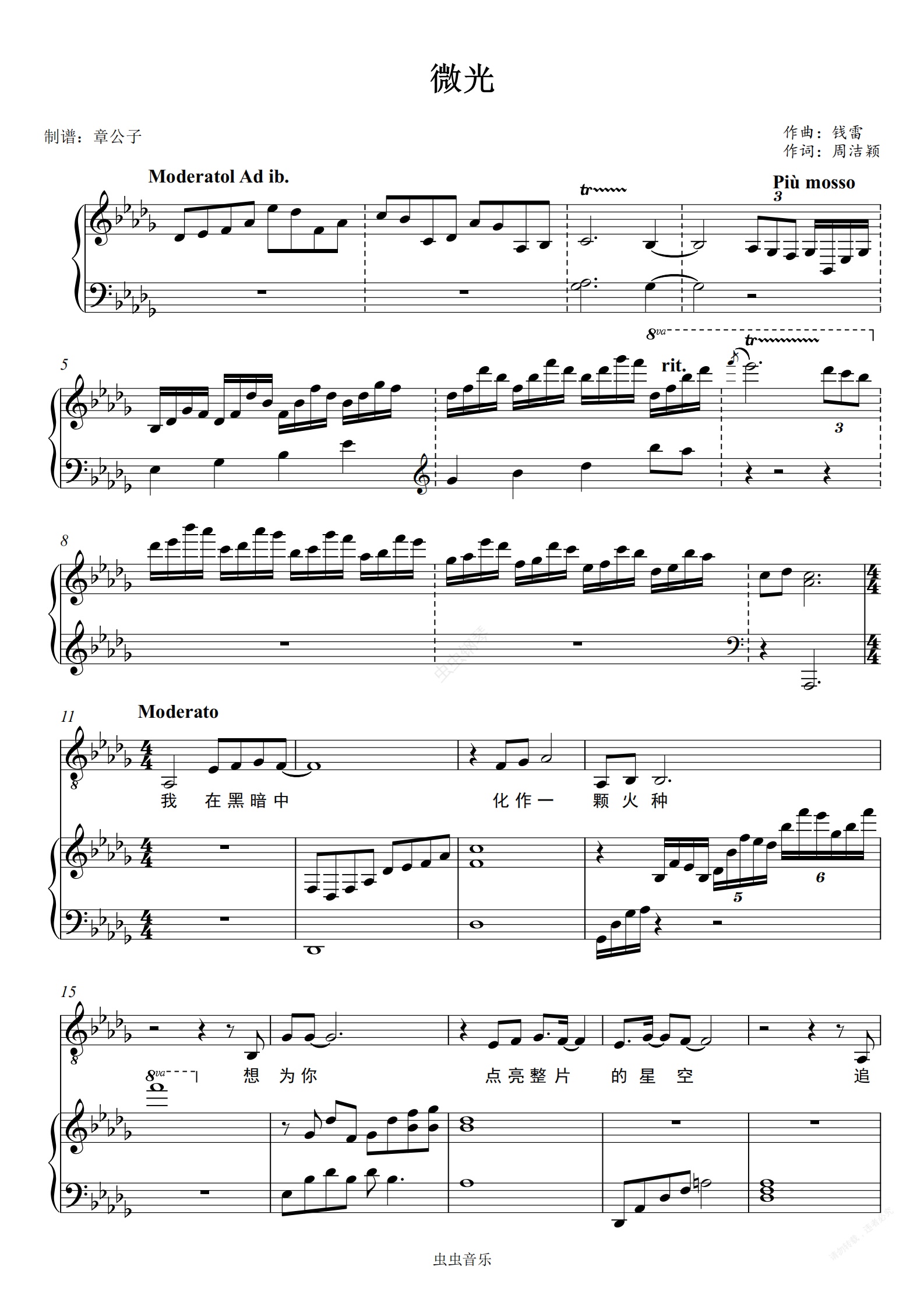 钢琴谱:微光 - 华晨宇 完美弹唱(伴奏)谱 bD调
