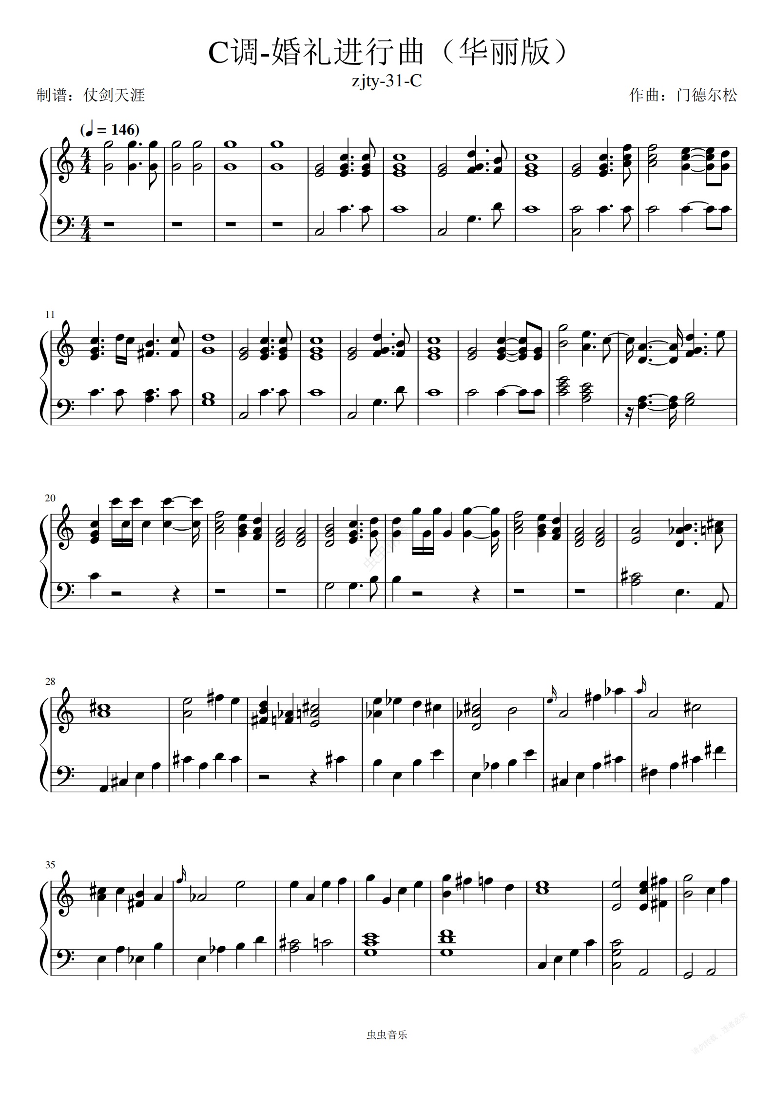 钢琴谱:C调-婚礼进行曲(华丽版)